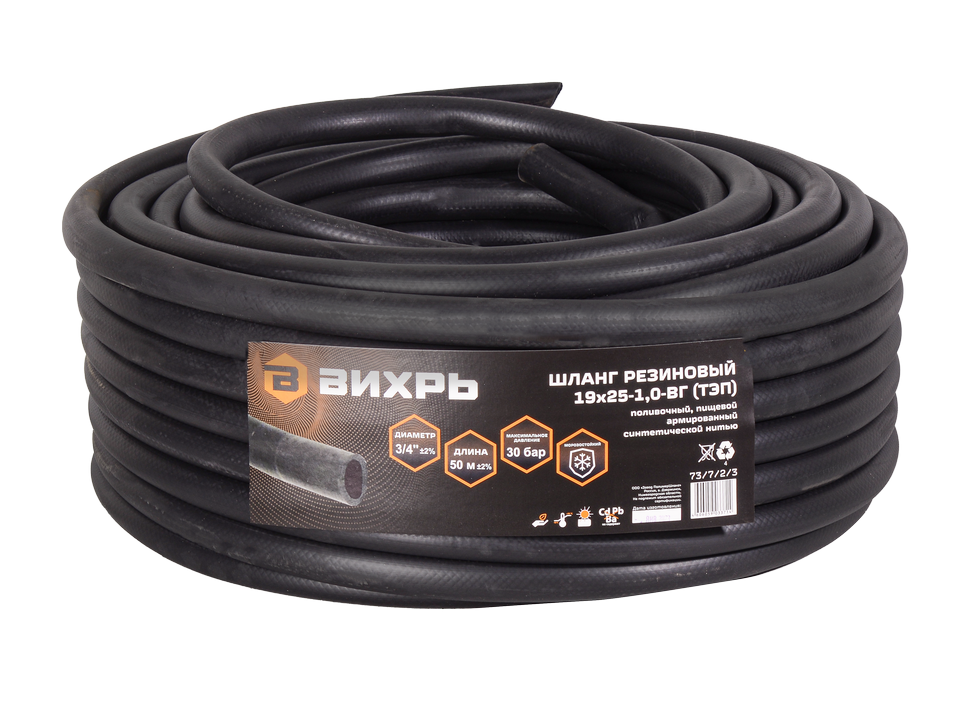 Шланг армированный резиновый Вихрь 18х23-1.0, ВГ, 50 м, чёрный 73/7/2/3