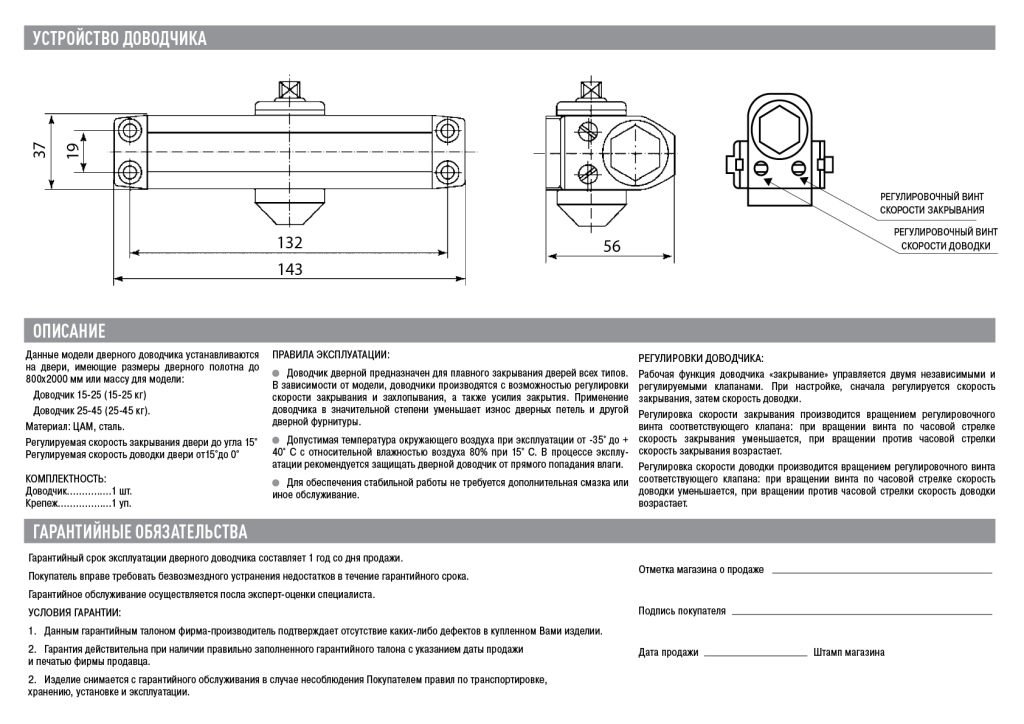 Доводчик дверной 15-25кг, коричневый РемоКолор