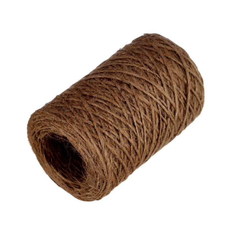 Шпагат изготовлен из отборного волокна джута, скрученного в тонкие пряди золотисто-коричневого цвета, диаметром 1,5–2 мм.