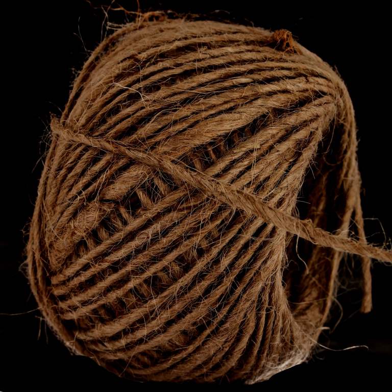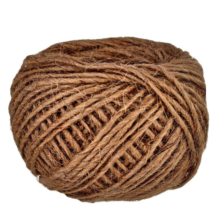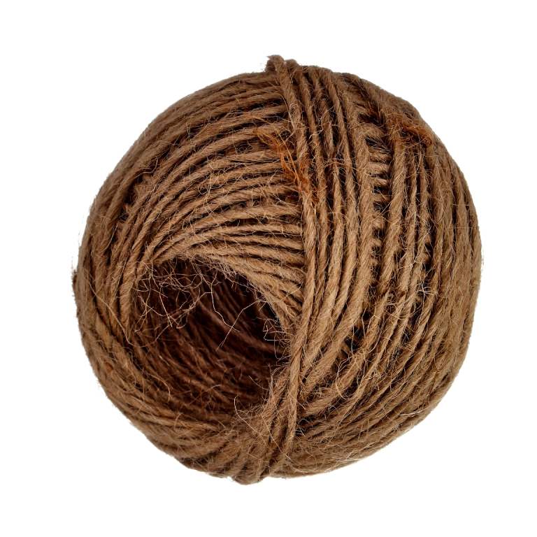 Шпагат изготовлен из отборного волокна джута, скрученного в тонкие пряди золотисто-коричневого цвета, диаметром 1,5–2 мм.