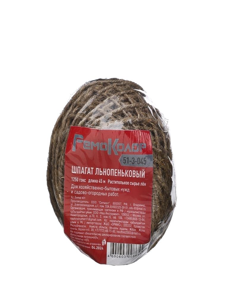 Шпагат изготовлен из натуральных волокон пеньки и льна и является экологически чистым товаром.
