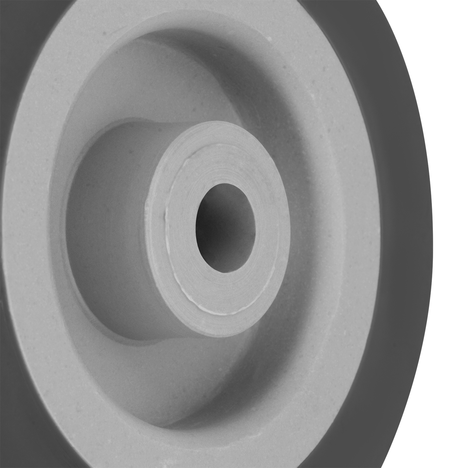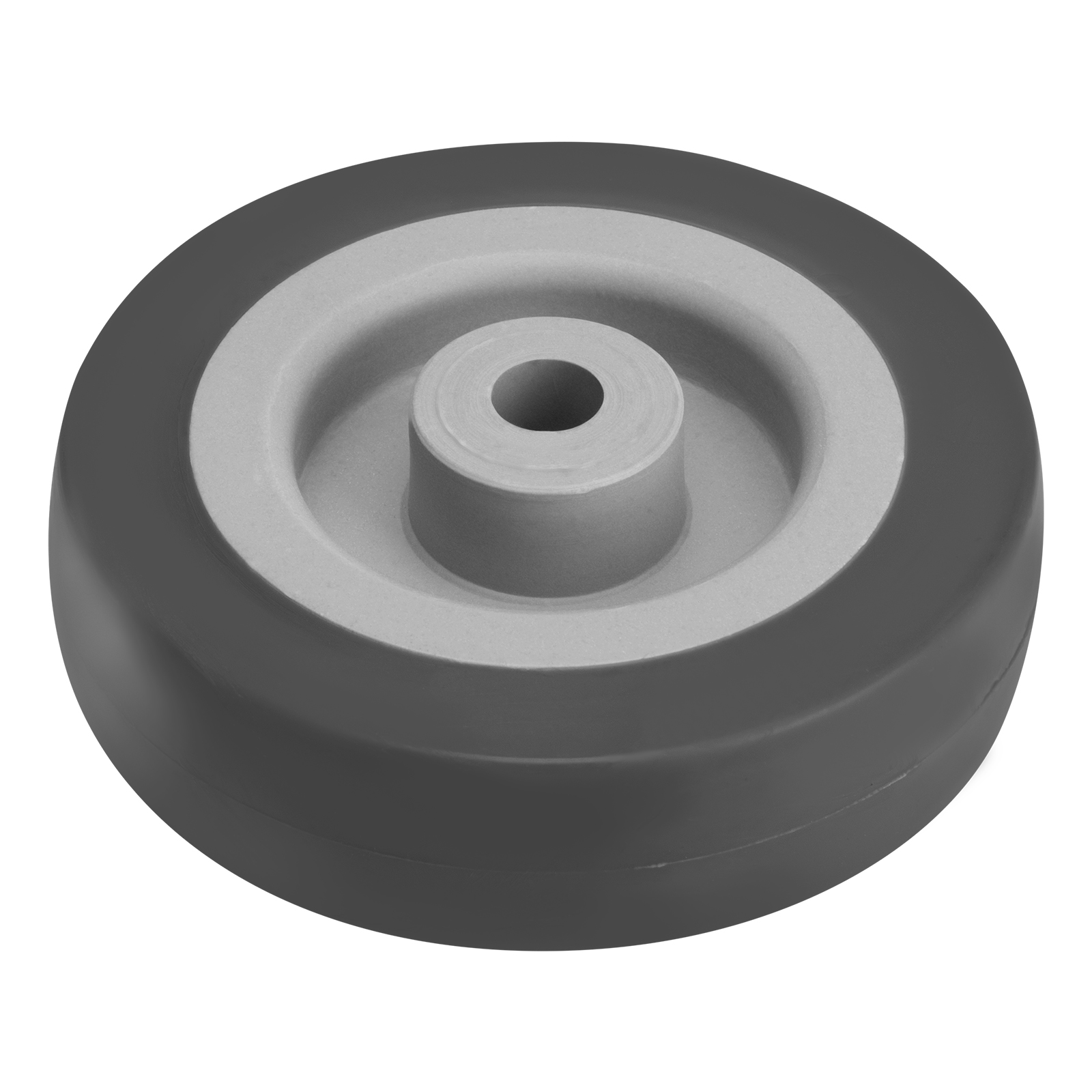 - Универсальность — контактная поверхность выполнена из термопластичной серой резины, поэтому колесо может применяться на различных покрытиях, долгое время сохраняя рабочие качества.