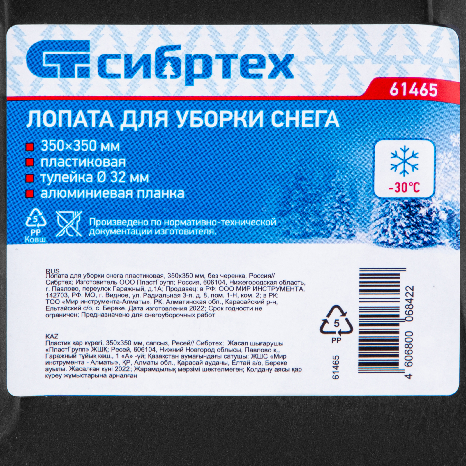 Пластиковая лопата Сибртех 61465, 350 х 350 мм, без черенка, используется для уборки снега на занесенных дорожках, тротуарах, подъездных путях. Эффективность работ обеспечивается благодаря вместительному ковшу с высокими бортиками. Ковш можно установить на черенок диаметром 32 мм, лопата совместима с артикулами 68408, 68412, 68409.