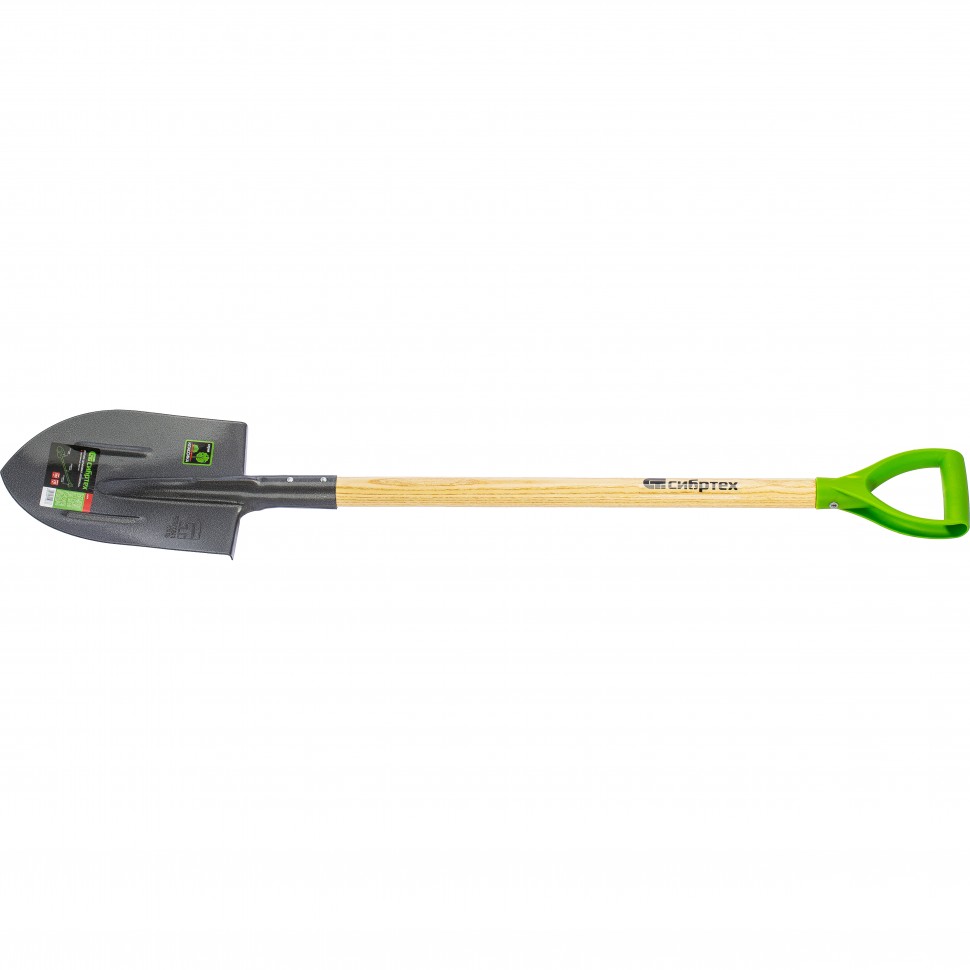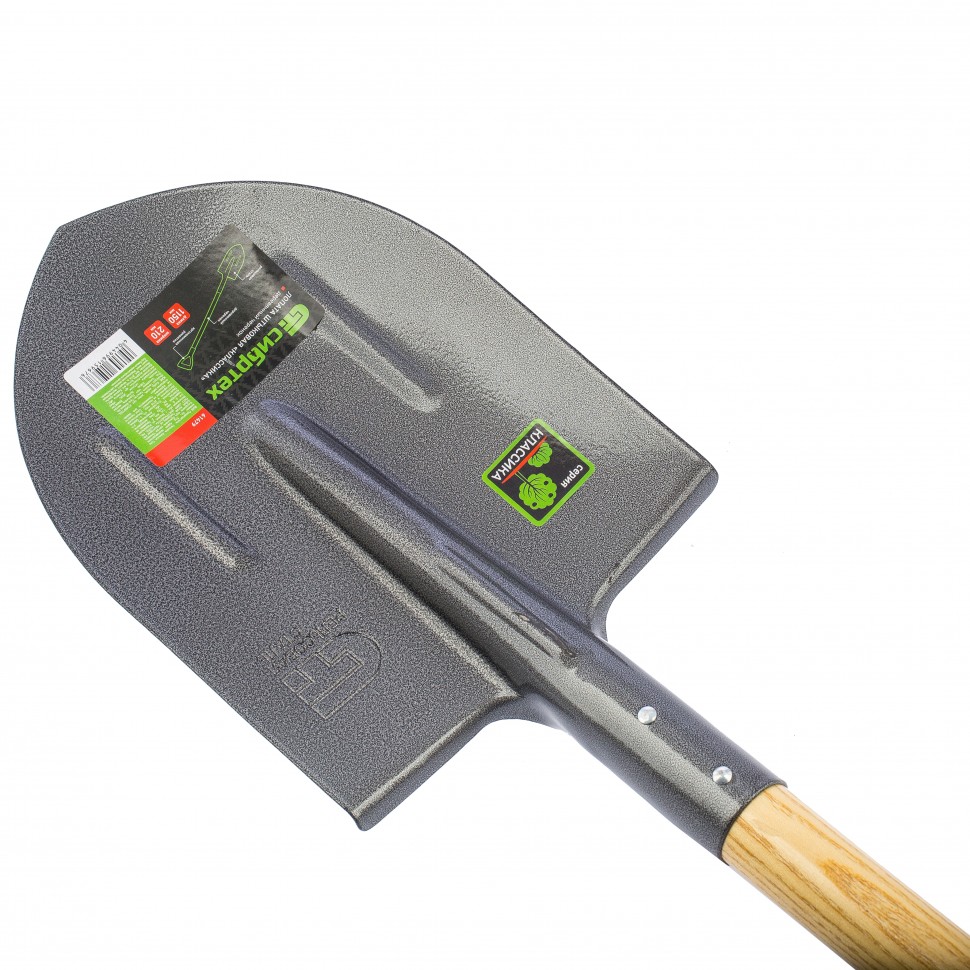 - Лопата оснащена цельновырубной тулейкой и полотном клиновидной формы с ребрами жесткости, благодаря чему обладает высокой прочностью на излом.