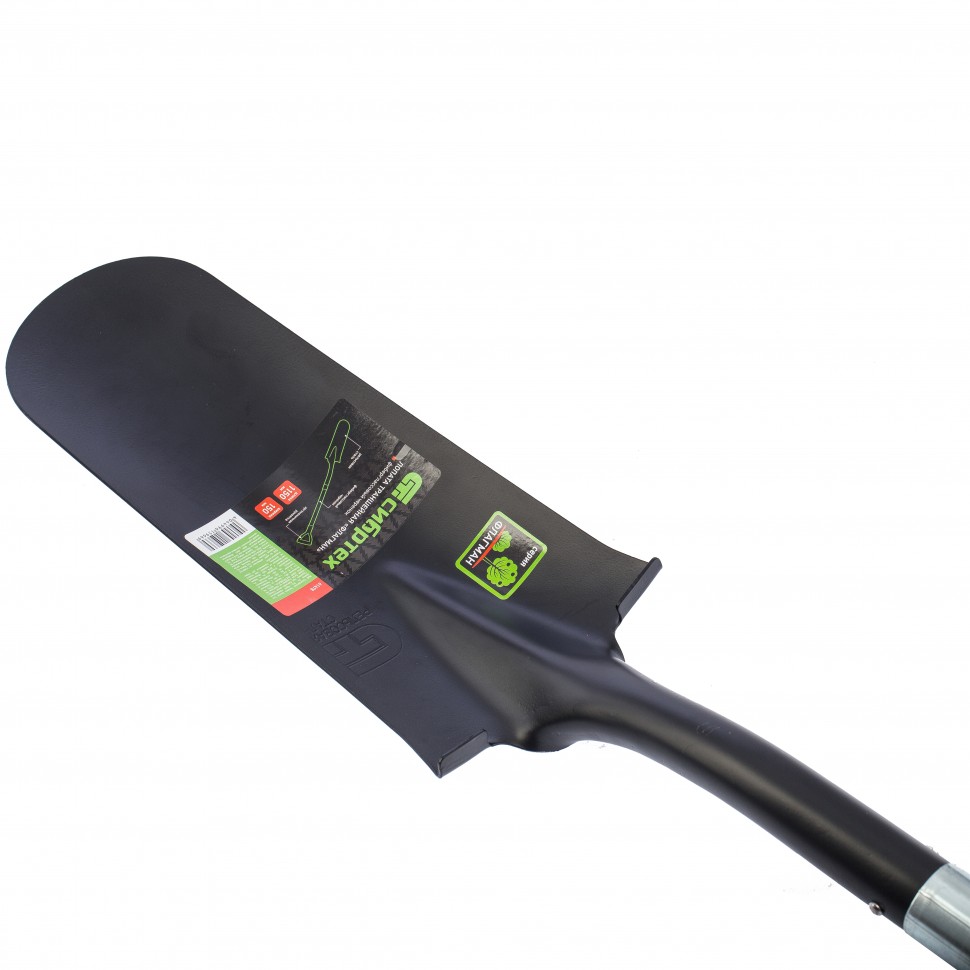 - Устойчивость к коррозии — полотно покрыто порошковой эмалью, а черенок выполнен из фибергласа.