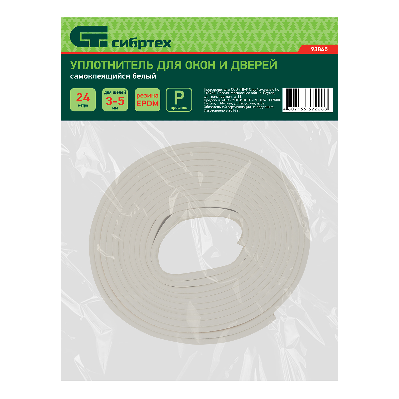 Уплотнитель, 24 м, профиль "P", белый, Россия Сибртех