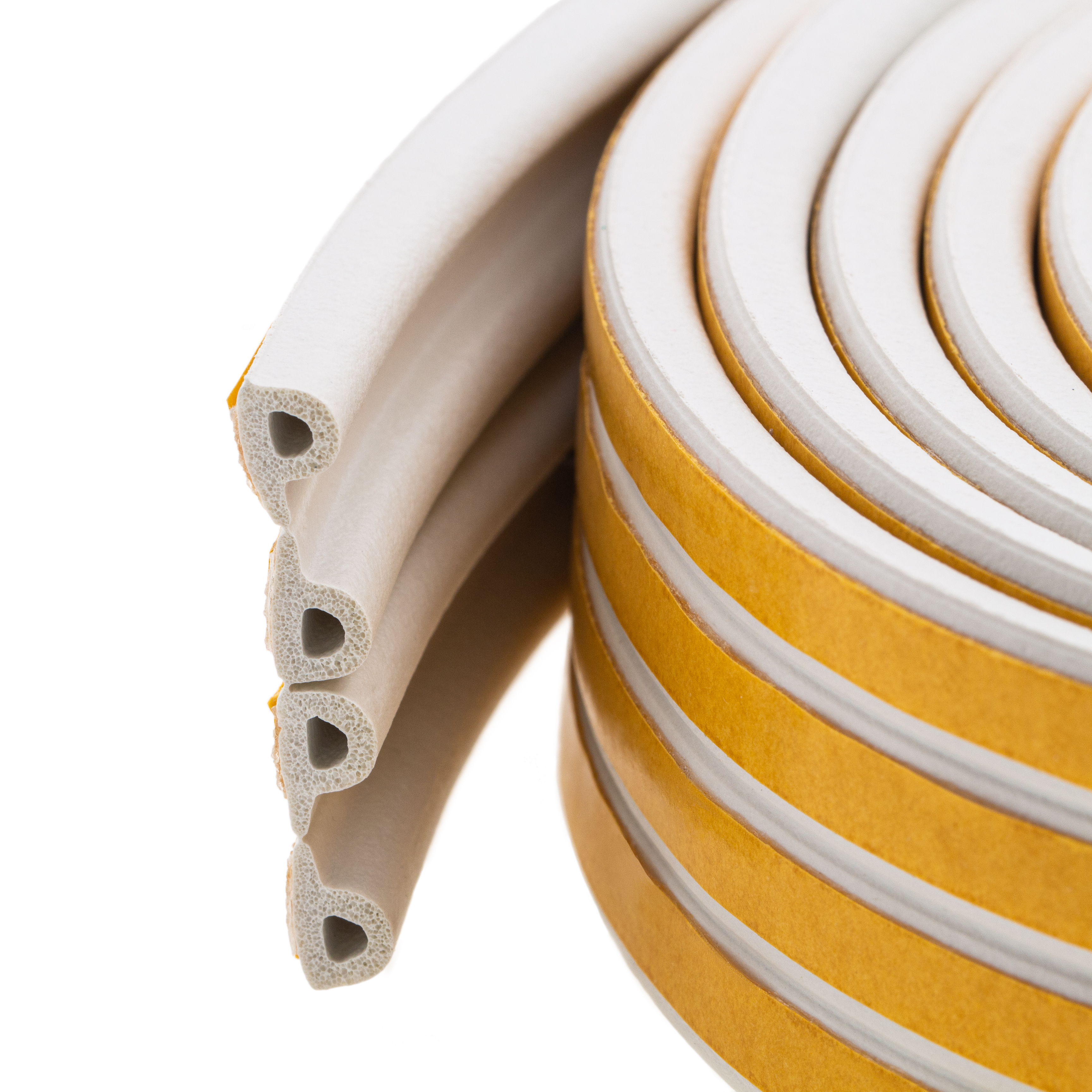 Белый резиновый уплотнитель Сибртех 88907 длиной 12 м, профиль «Р», предназначен для герметизации и уплотнения оконных и дверных блоков с целью исключения сквозняков и вибраций, защиты от влаги и пыли, создания эффективной тепло- и звукоизоляции. Изделие снижает энергетические и экономические затраты. P профиль 9 x 5,5 мм подойдет для щелей размером 3-5 мм.
