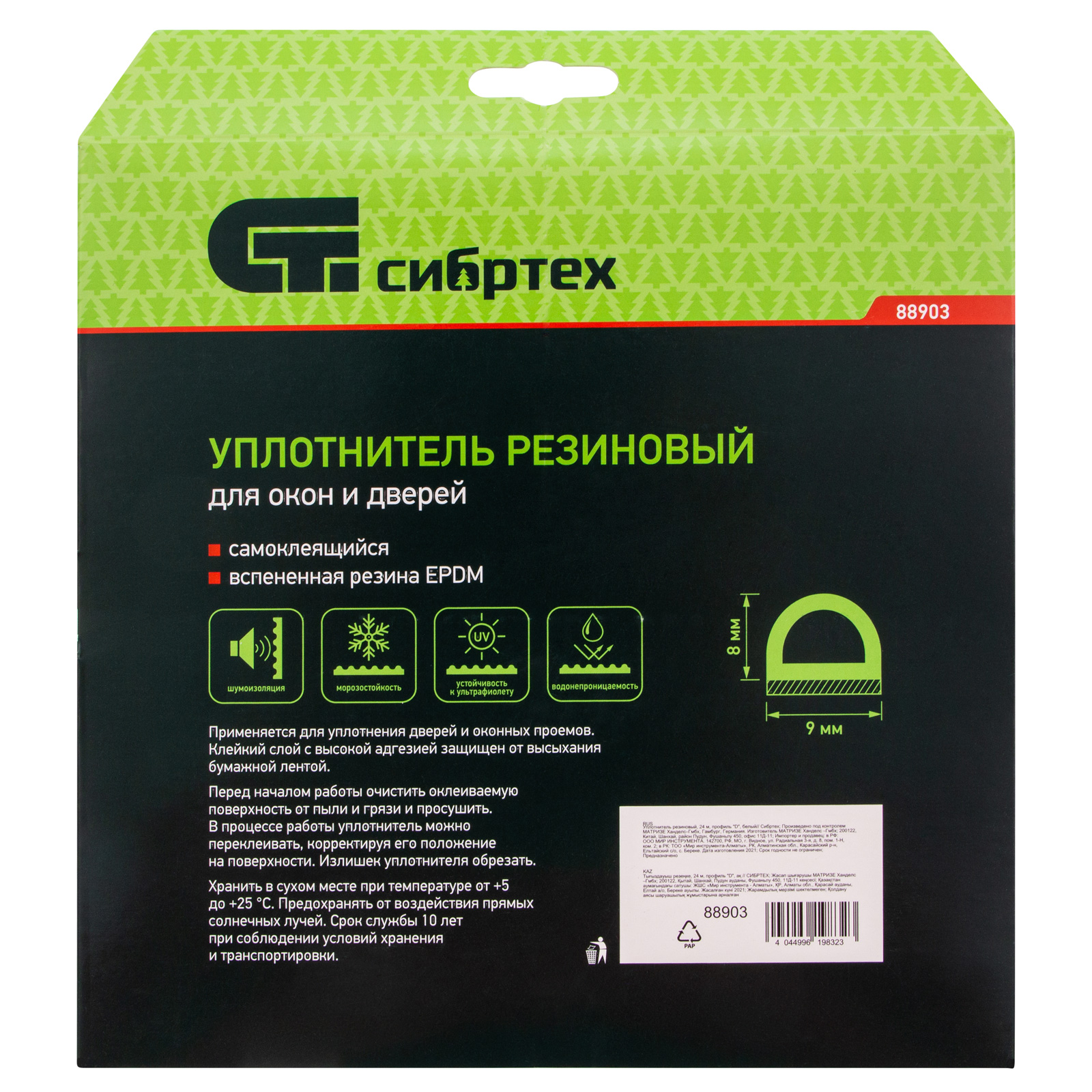 Белый резиновый уплотнитель Сибртех 88903 длиной 24 м, профиль «D», предназначен для герметизации и уплотнения оконных и дверных блоков с целью исключения сквозняков и вибраций, защиты от влаги и пыли, создания эффективной тепло- и звукоизоляции. Изделие снижает энергетические и экономические затраты. D профиль 9 x 8 мм подойдет для щелей размером 3-7 мм.