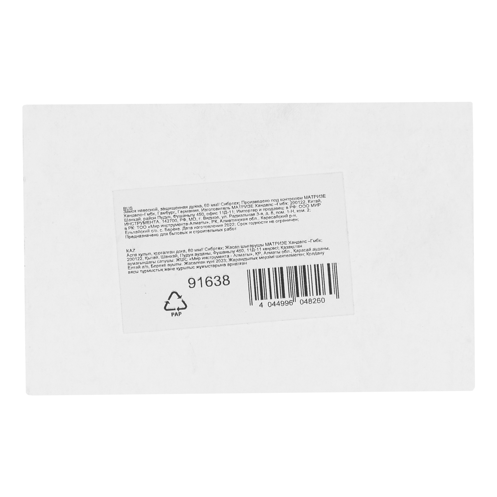 Навесной замок Сибртех 91638 шириной 60 мм, с защищенной дужкой, вешают на дверные проушины для защиты имущества от хищения. Дужка утоплена в корпус, что обеспечивает надежную защиту от взлома. Замок подойдет для установки на дверь склада, сарая, гаража или бытовки.