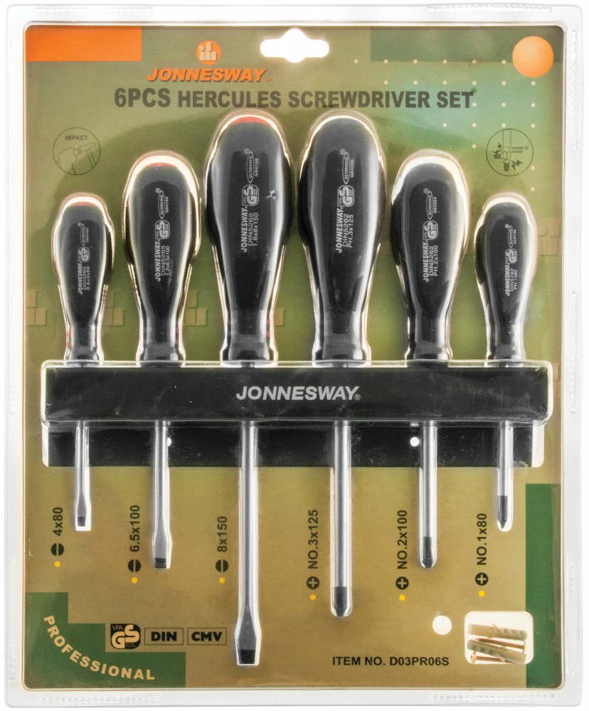 Набор отверток стержневых HERCULES, 6 предметов Jonnesway D03PR06S