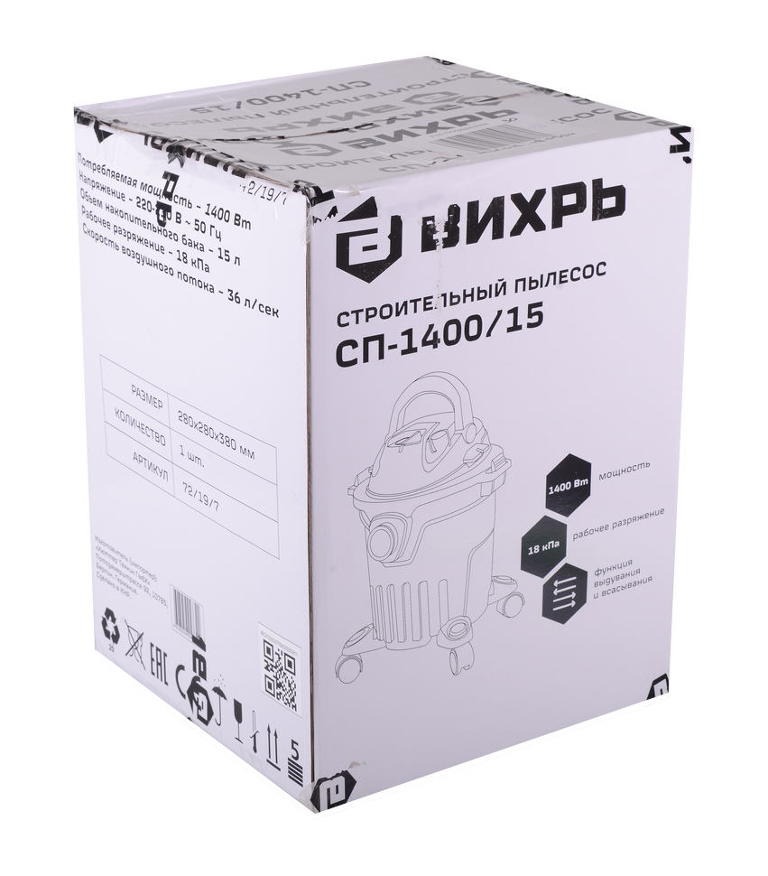 Строительный пылесос СП-1400*15 Вихрь 72/19/7