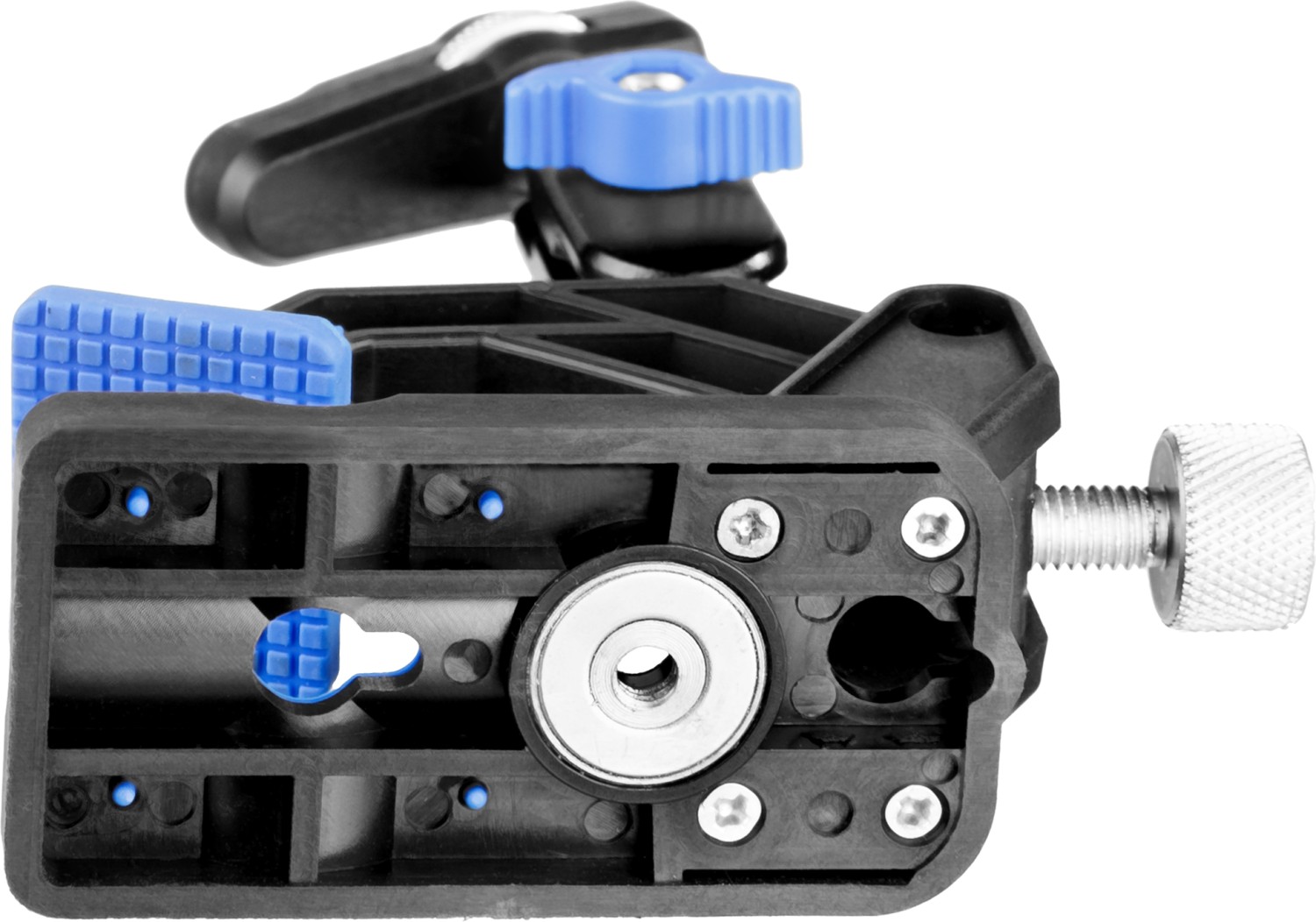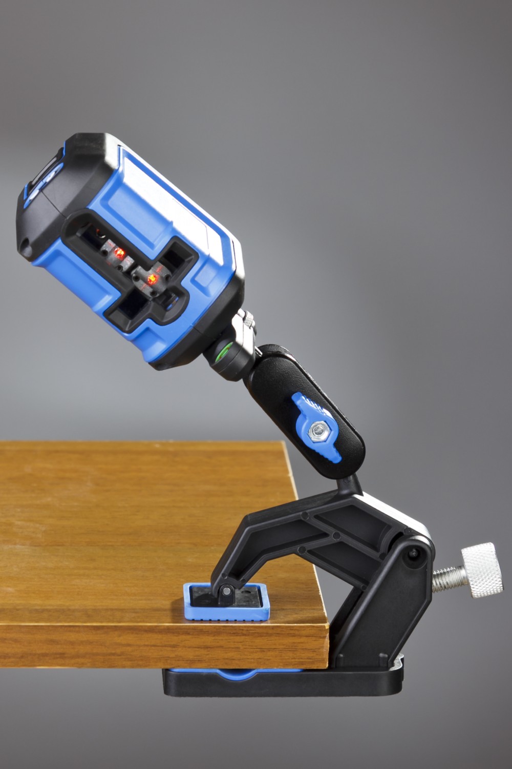 Профессиональный крепёжный элемент для лазерных устройств и цифровой техники с увеличенным диапазоном зажима. Оснащён поворотными шарнирами. Благодаря такой конструкции держатель крепится в разных местах и обеспечивает нужное направление лучей от прибора.