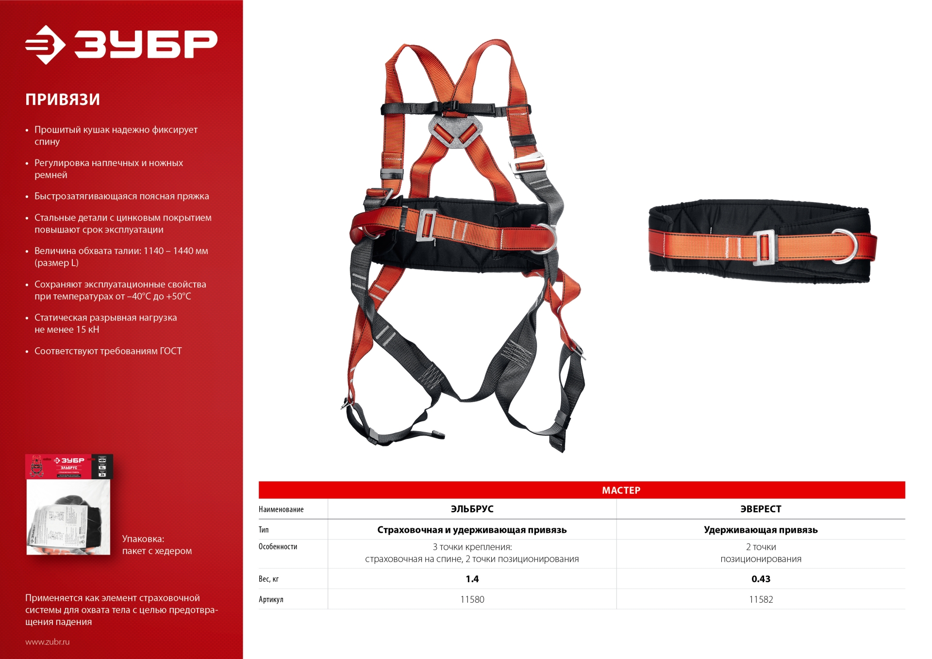 Удерживающая привязь «ЗУБР» – надежное средство защиты от падения с высоты.