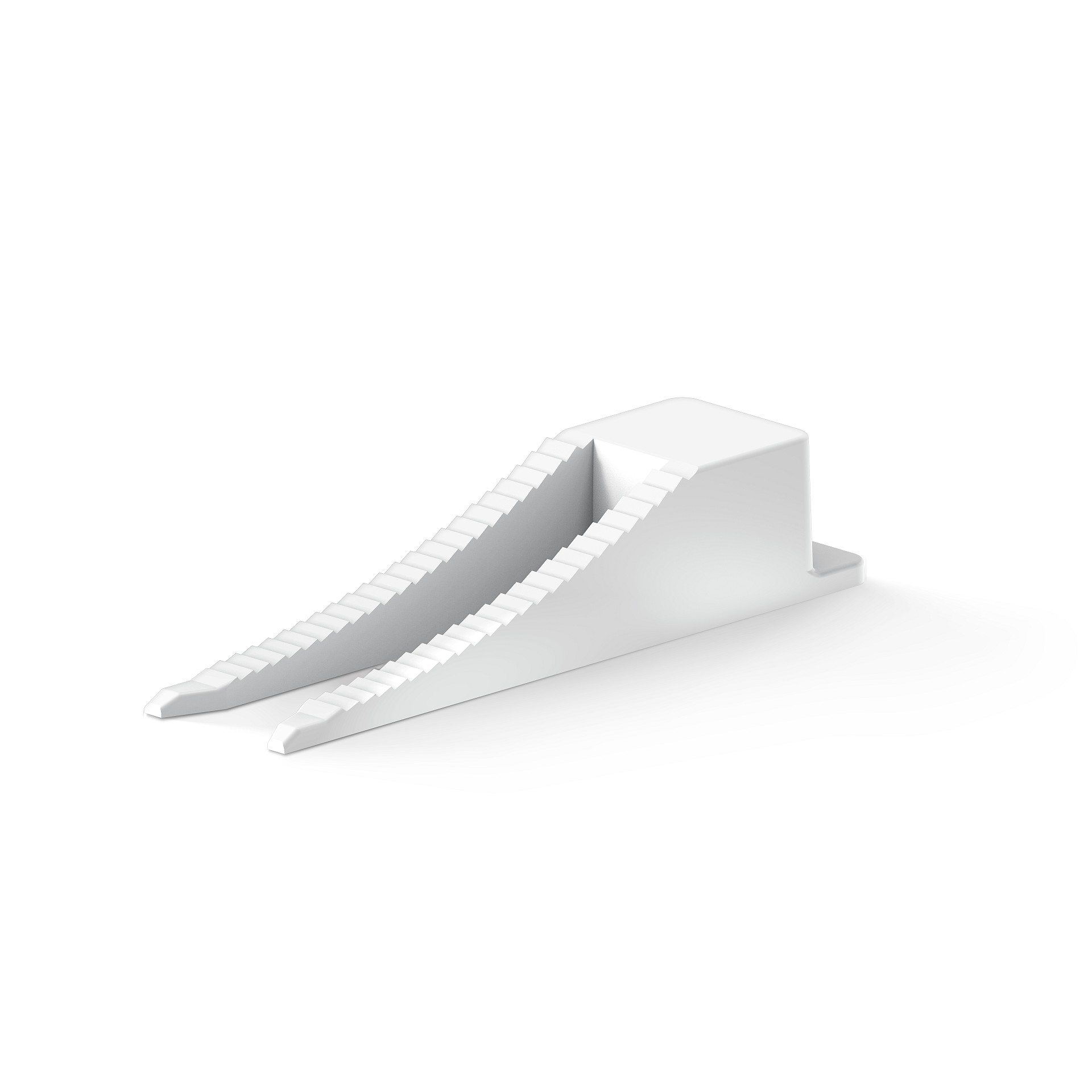Предназначен для многократного использования, сделан из прочного пластика, он не деформируется при зажимании и надежно удерживает плитку в единой плоскости, обеспечивая отсутствие проседания во время высыхания плиточного клея. «Шаг зубьев» и форма клина позволяет работать с плиткой толщиной от 3 до 12 мм.