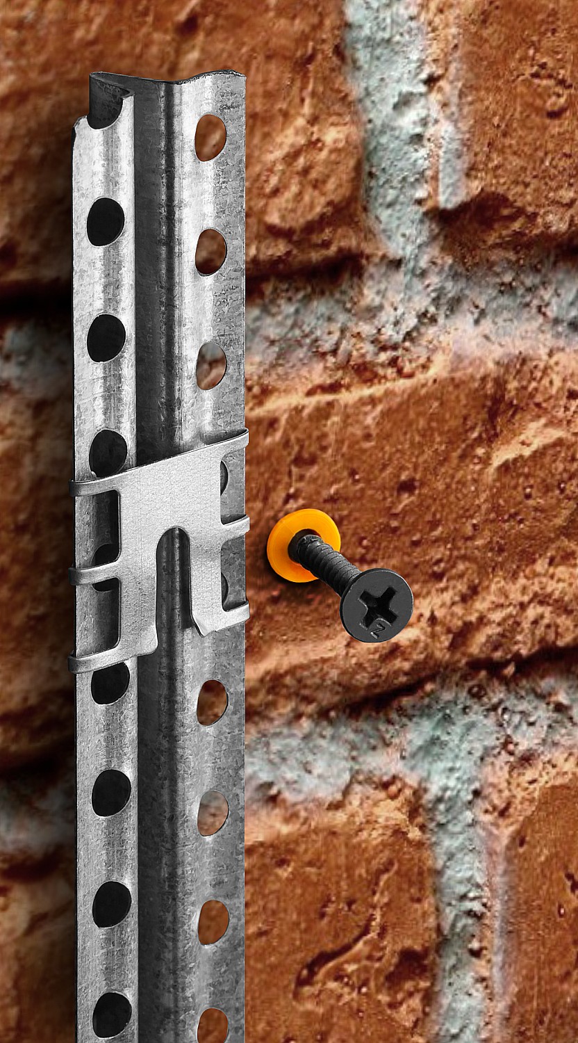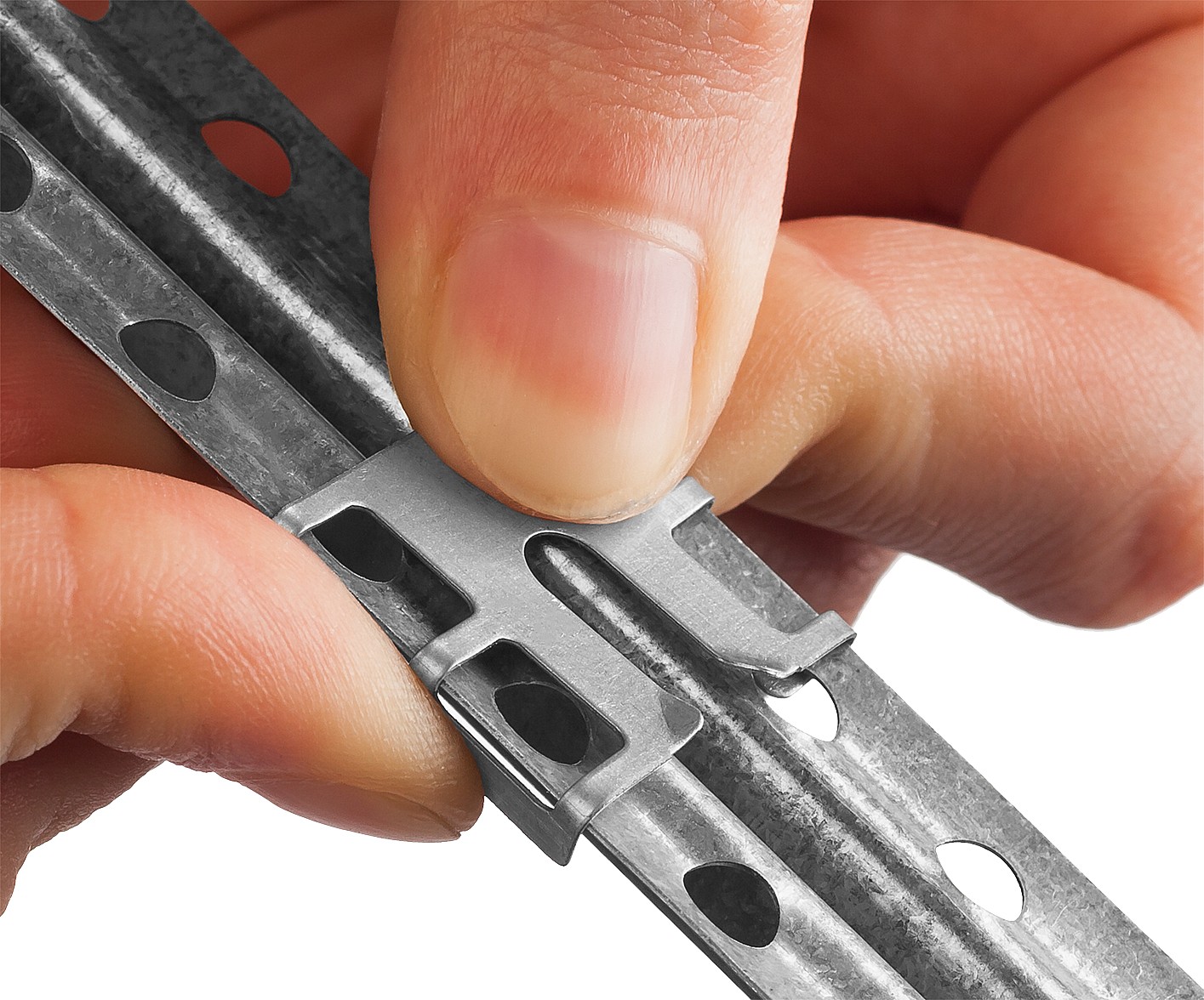 - Удобство использования - крепления фиксируются непосредственно на маячковом профиле до монтажа профиля на стену. Положение маячкового профиля можно легко регулировать даже после его установки.