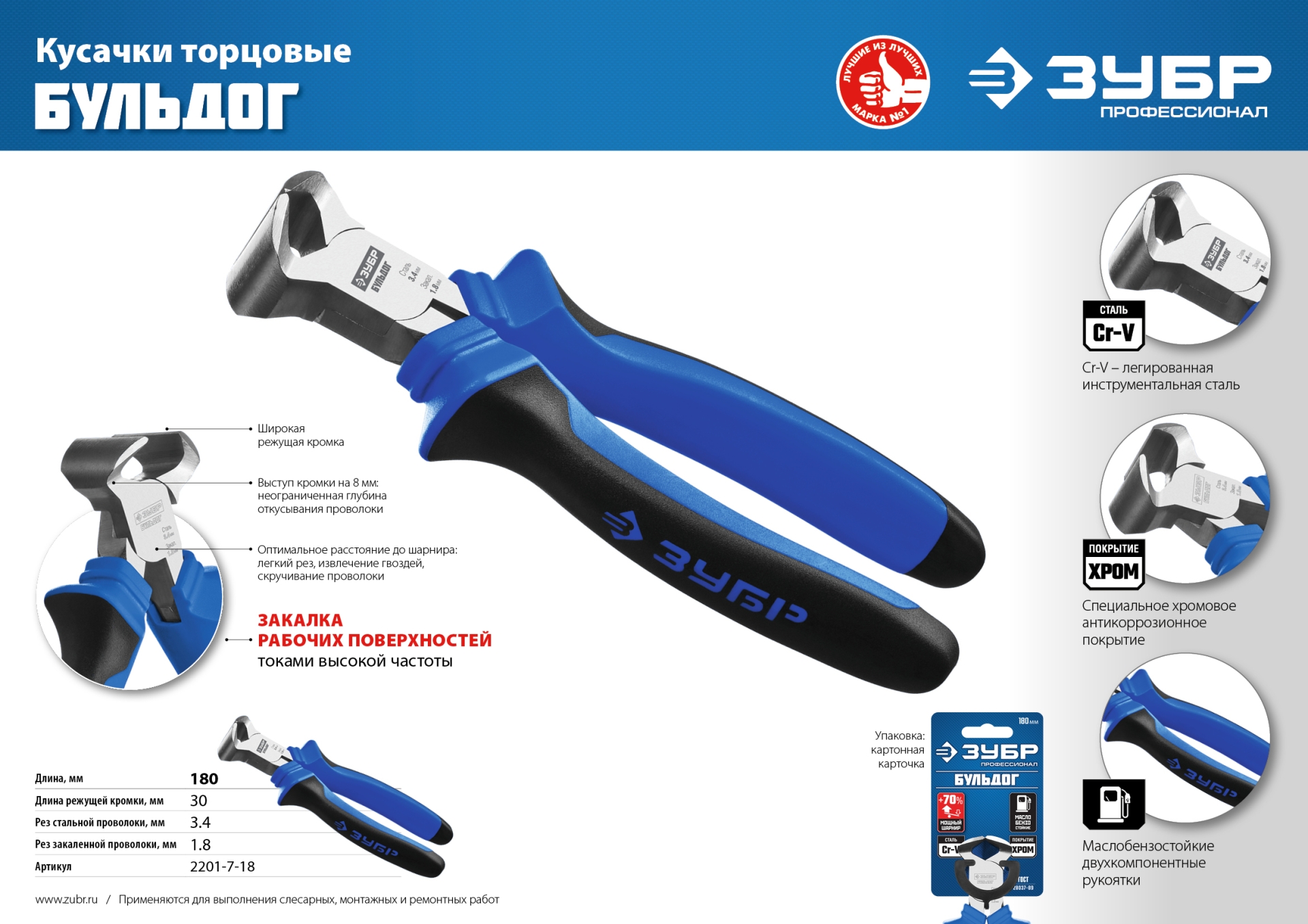 Кусачки торцевые, 180 мм ЗУБР ПРОФЕССИОНАЛ