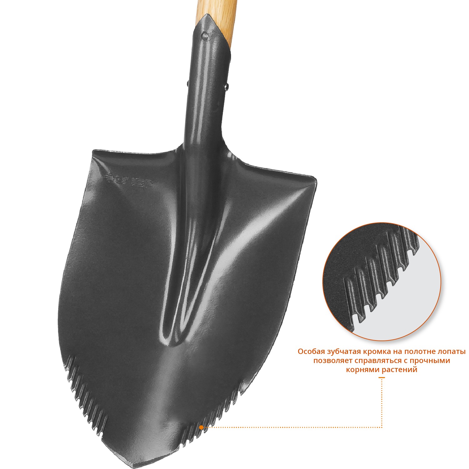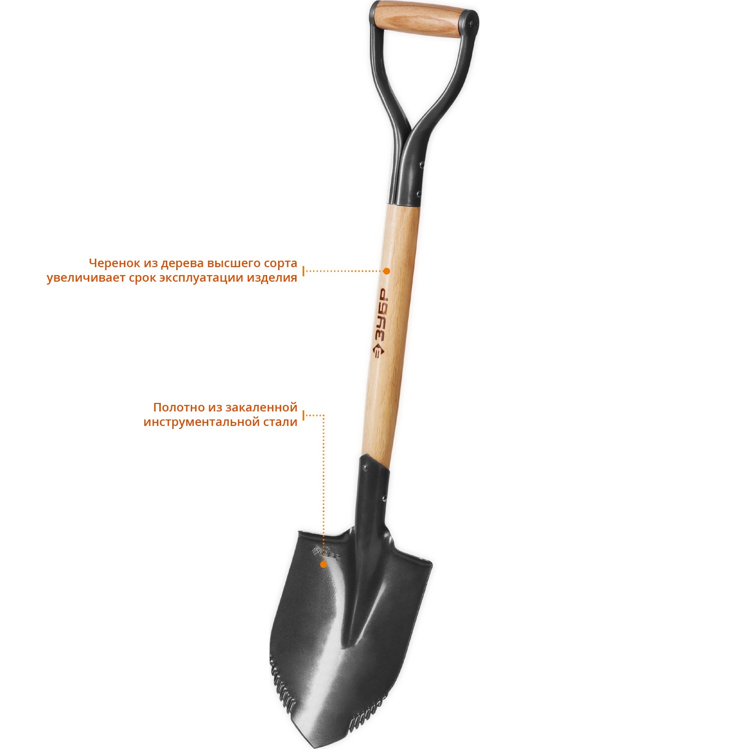 Лопата "БЕРКУТ" автомобильная, деревянный черенок, металлическая рукоятка, ЗУБР Профессионал