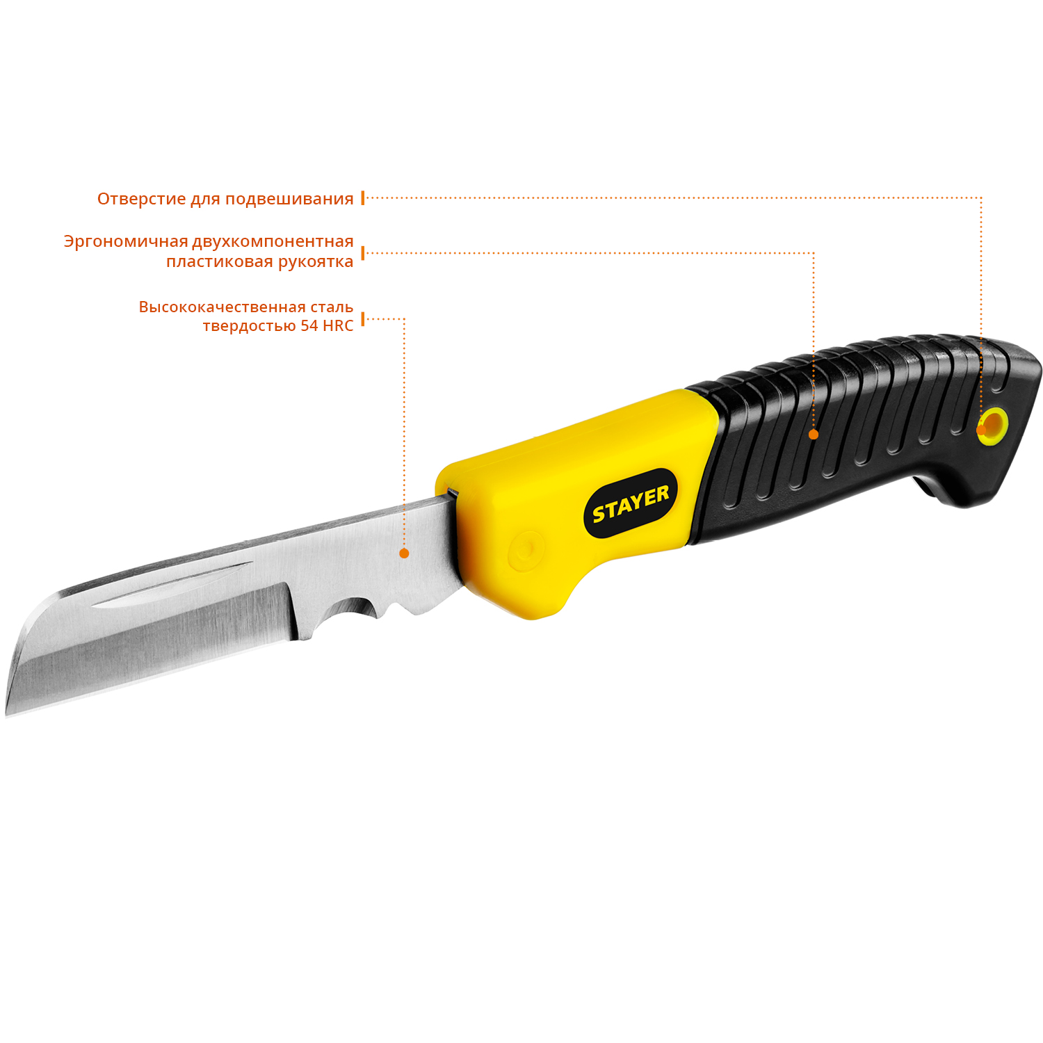 Нож монтерский STAYER изготовлен из высококачественной стали со специальной заточкой рабочих поверхностей, предназначен для профессионального применения. Обладает повышенным ресурсом, обеспечивает высокое качество электромонтажных работ.