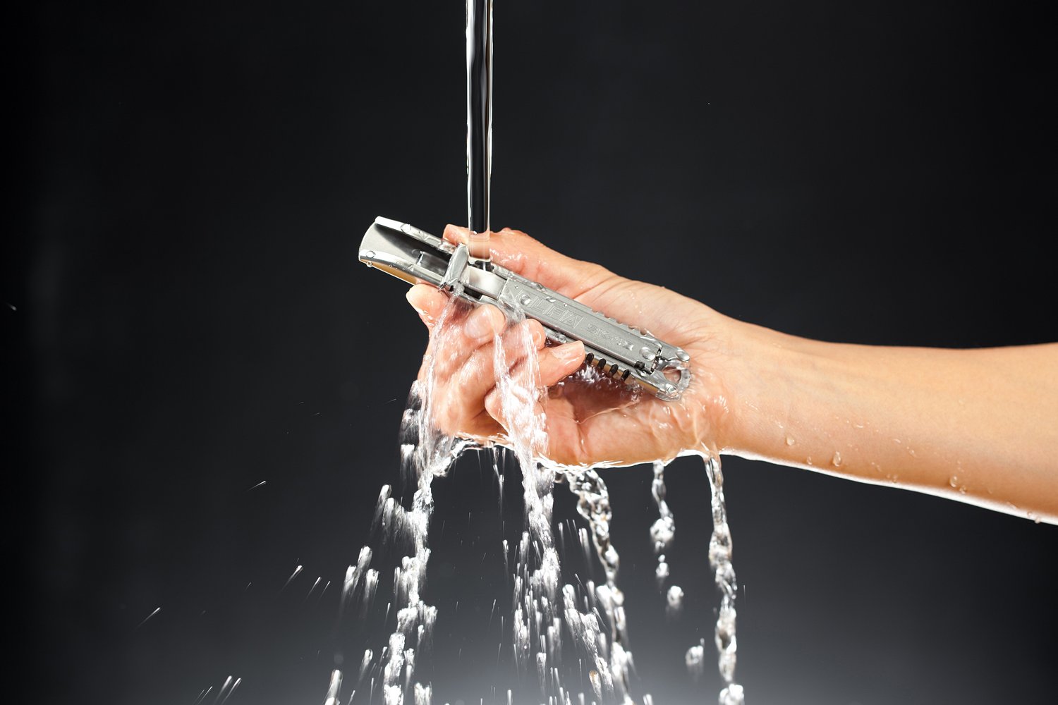 - Корпус ножа, лезвие и возвратная пружина целиком из нержавеющей стали