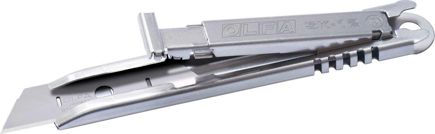 Нож OLFA SK-12 специально разработан для применения в пищевой промышленности и ресторанном бизнесе. Сертифицирован NSF благодаря возможности легко поддерживать его в чистоте любыми методами и составами, в том числе дезинфекция гипохлоритом натрия, за счет конструкции и лезвию SKB-2S из нержавеющей стали. Также, нержавеющая сталь обладает высоким коэффициентом намагничивания, что обеспечивает ножу более высокую точность нахождения металлодетекторами, чем у обычных ножей с пластиковыми рукоятками.