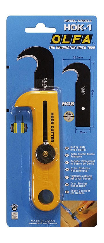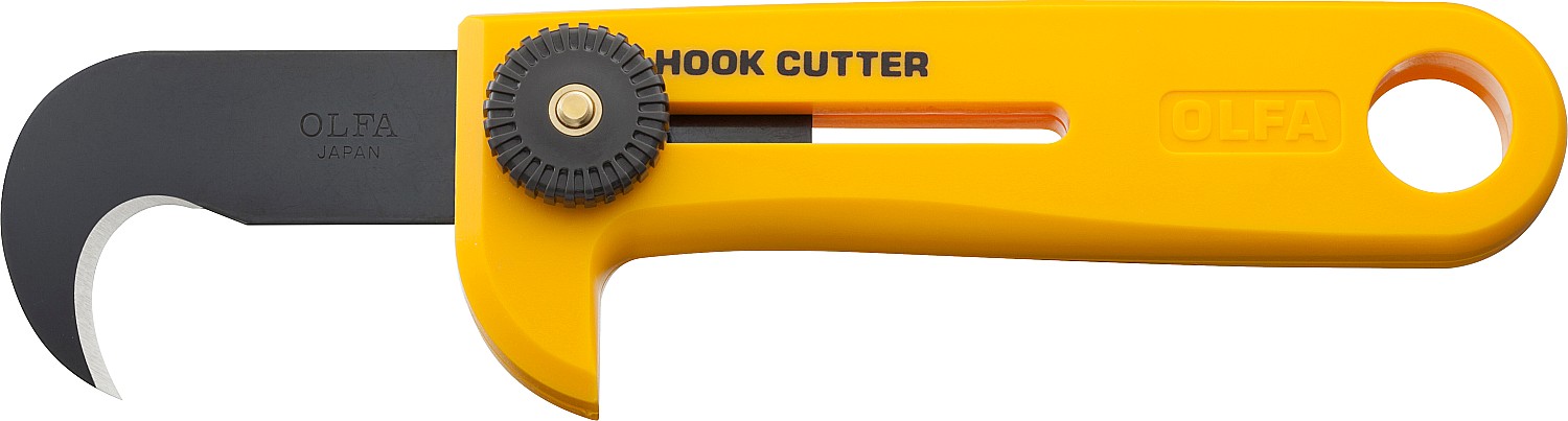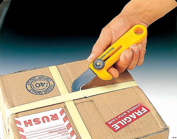 OLFA HOK-1 идеально подходит для резки упаковочных пленок, веревок и лент. Нож обладает высокой режущей способностью, но при этом не повреждает поверхность или внутреннее содержимое упаковки за счет уникальной формы.