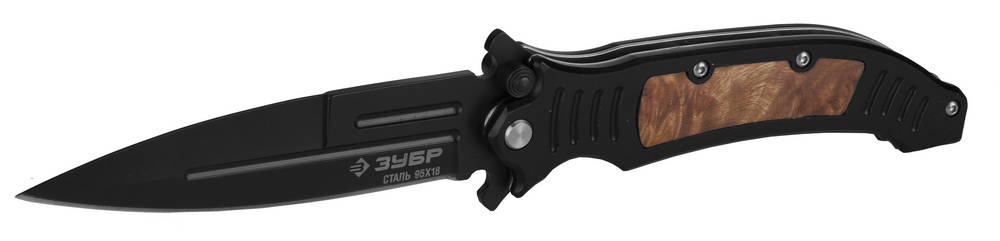 - Сталь 95Х18 (аналог стали AUS-10) обеспечивает отличный рез и стойкость режущей кромки