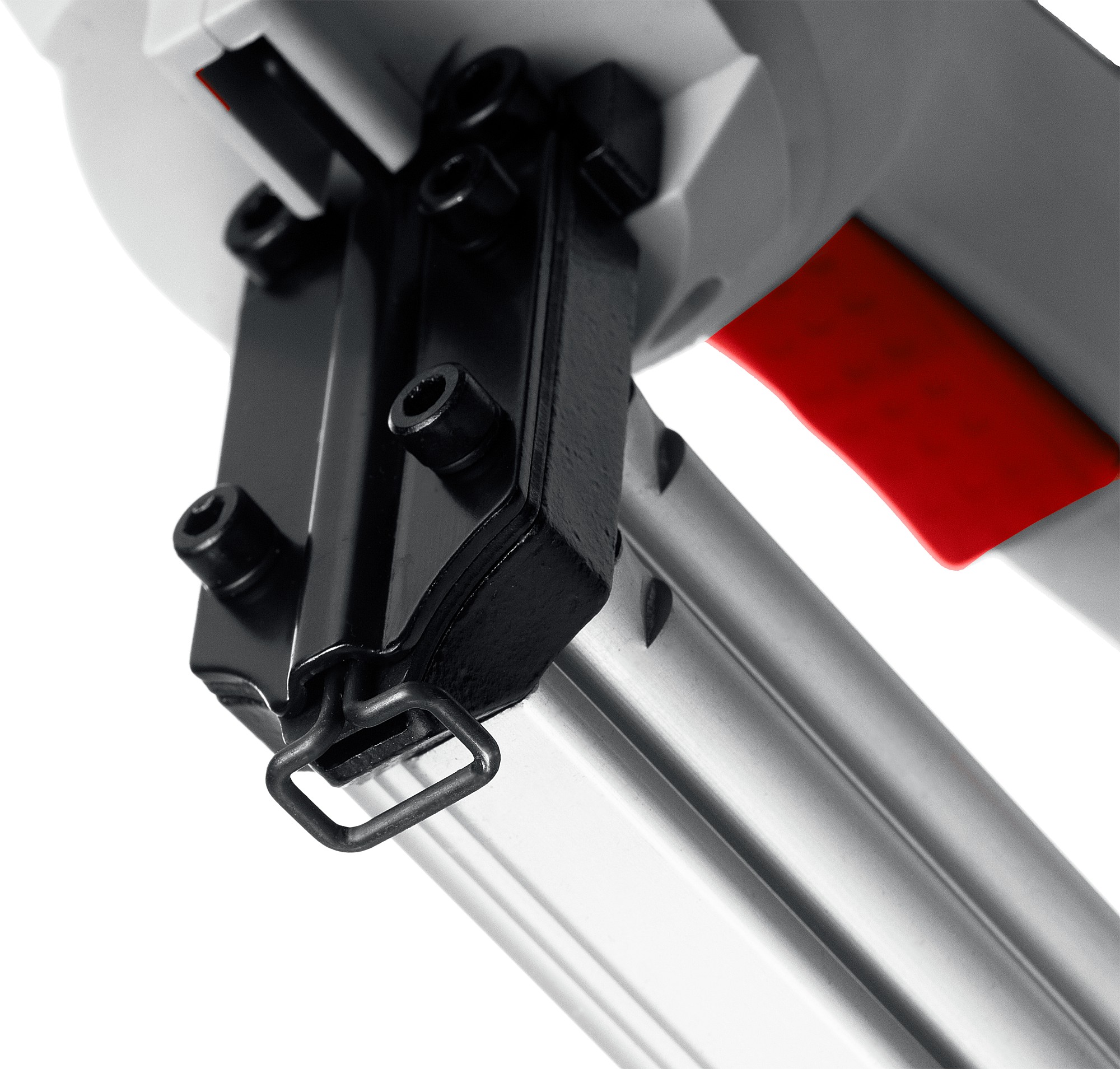 - блокировка курка от срабатывания без упора в материал - Вместительный магазин на 50 единиц крепежа для долговременной беспрерывной работы