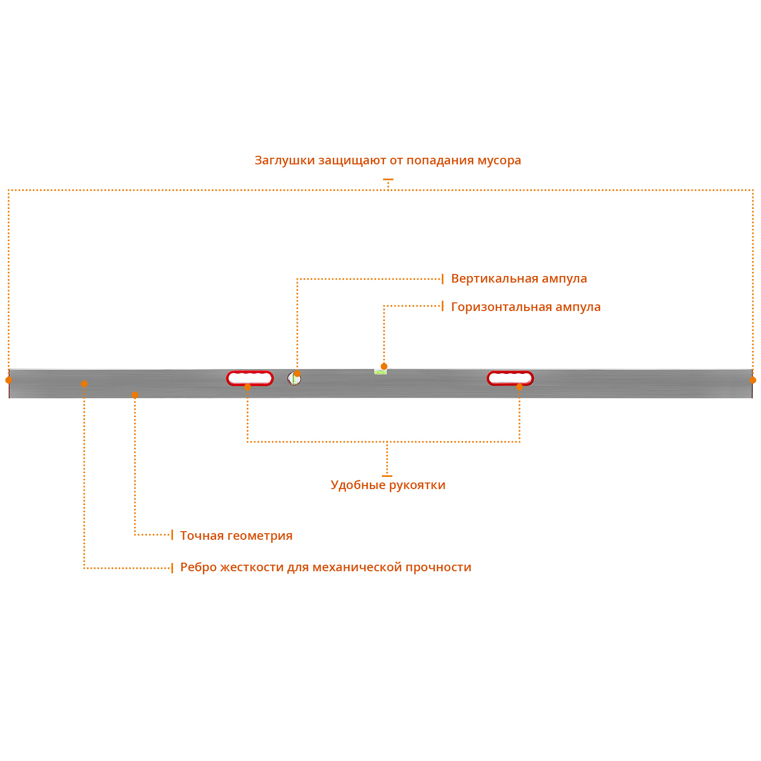 Правило-уровень с ручками, 2.5 м, СИБИН
