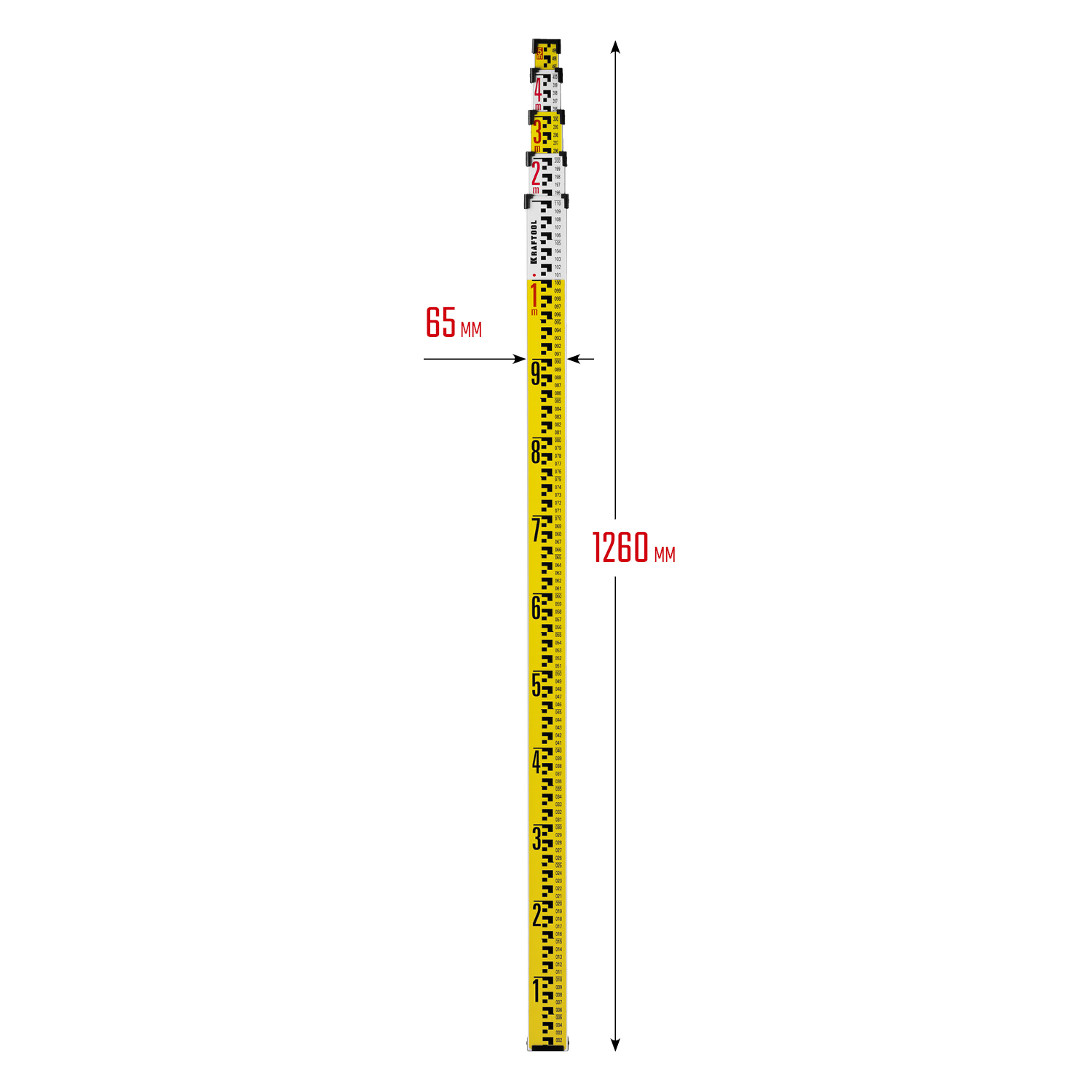 Профессиональный инструмент для работы с лазерным, оптическим инструментом для определения перепадов высоты. Имеет миллиметровую шкалу и E-градуировку .