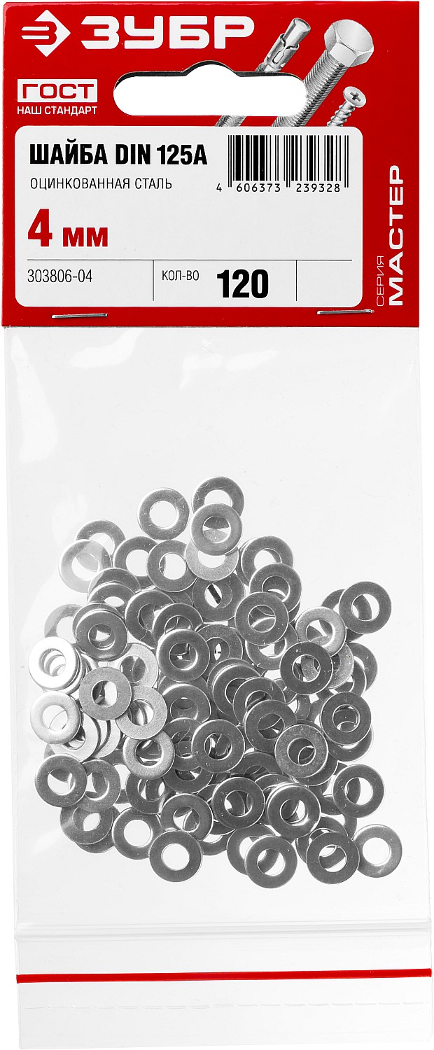 Шайба DIN 125A, 4 мм, 120 шт, оцинкованная, ЗУБР