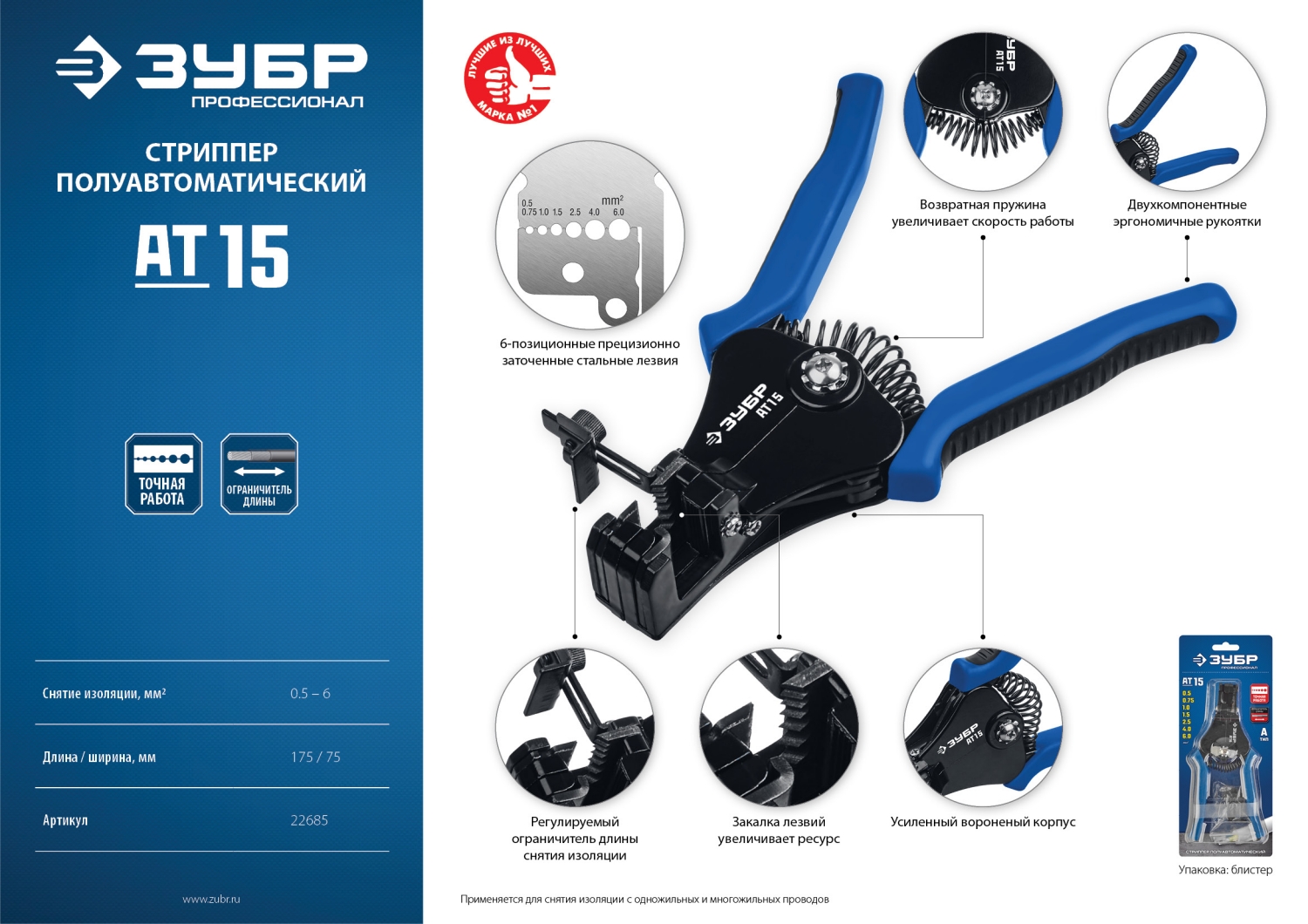 Стриппер полуавтоматический АT-15, 0.5 - 6 мм2, ЗУБР