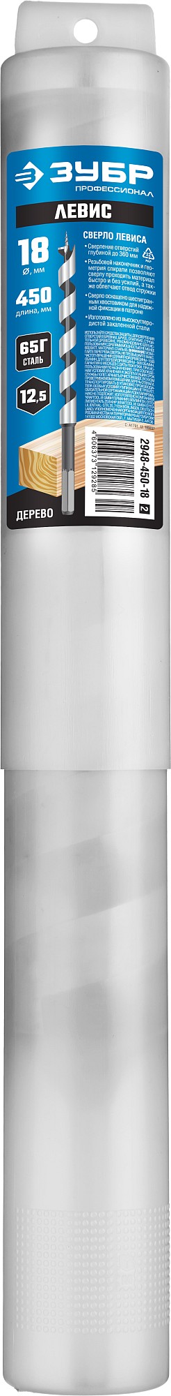Сверло левиса по дереву, шестигранный хвостовик ЗУБР 18x450/360мм