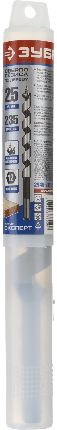 Сверло левиса по дереву, шестигранный хвостовик ЗУБР 25x235/160мм