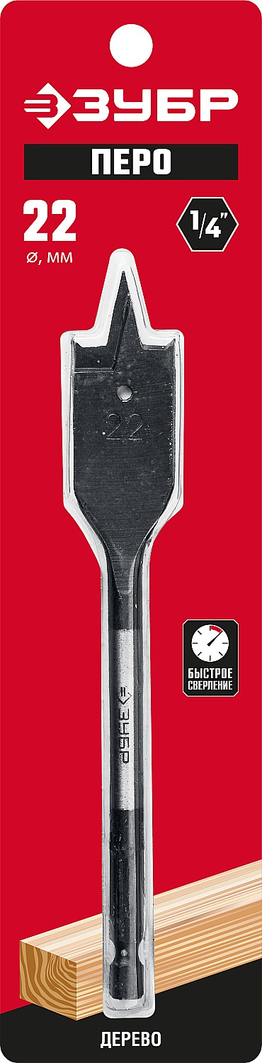 Сверло перовое по дереву, с боковыми подрезателями ЗУБР 22x152мм