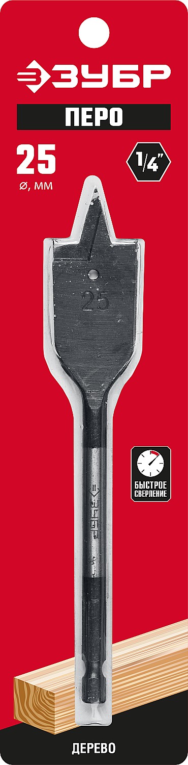 Сверло перовое по дереву, с боковыми подрезателями ЗУБР 25x152мм