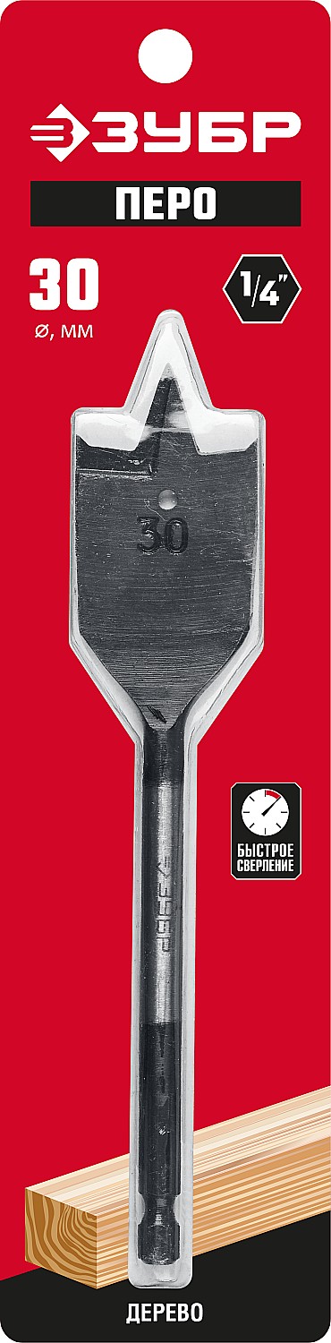Сверло перовое по дереву, с боковыми подрезателями ЗУБР 30x152мм