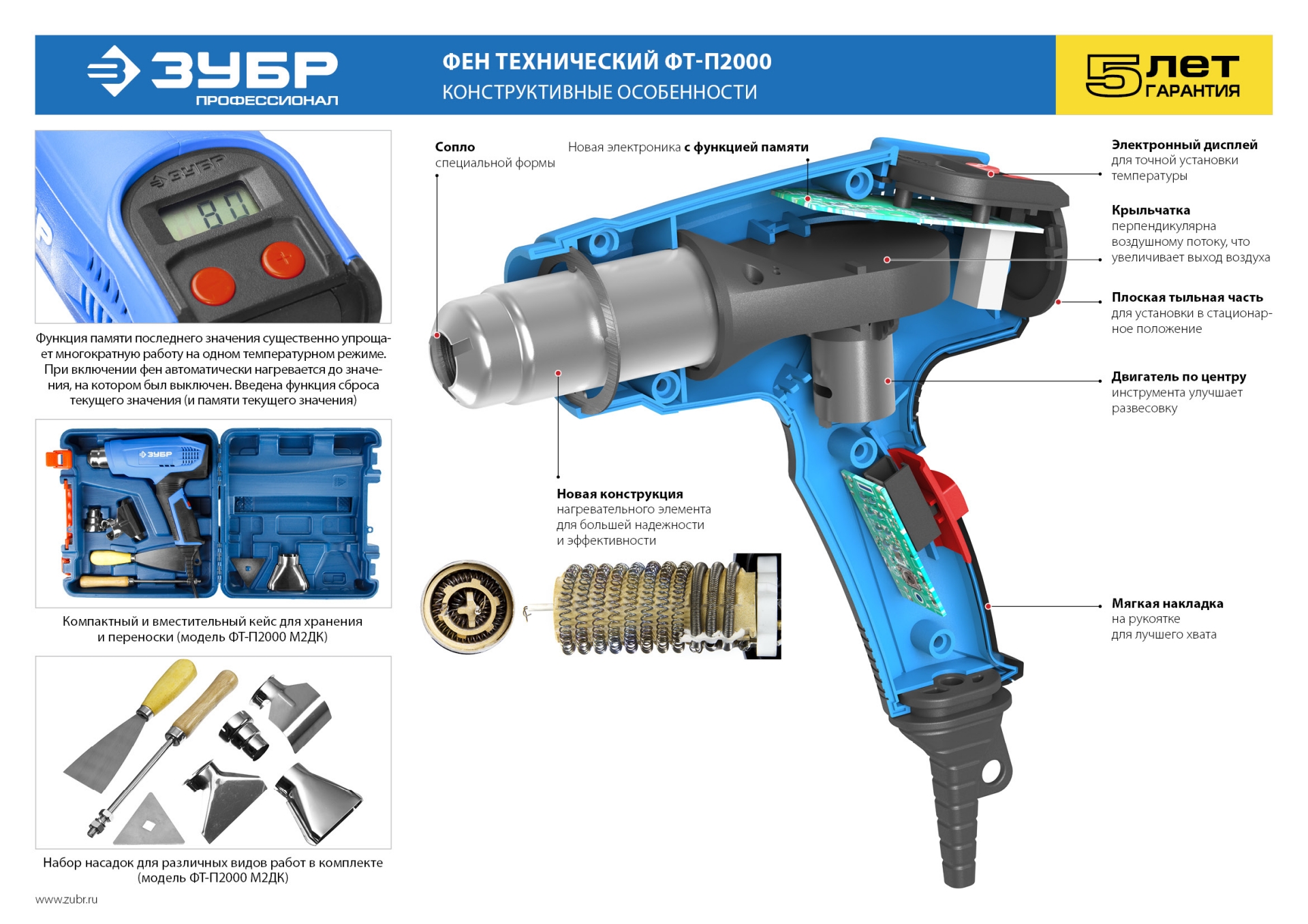 Технический фен ЗУБР ПРОФЕССИОНАЛ ФТ-П2000 М2Д