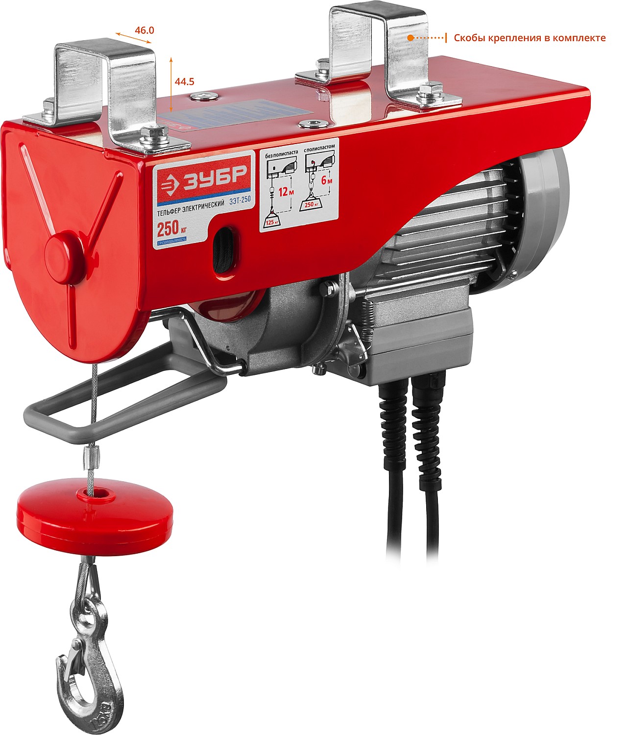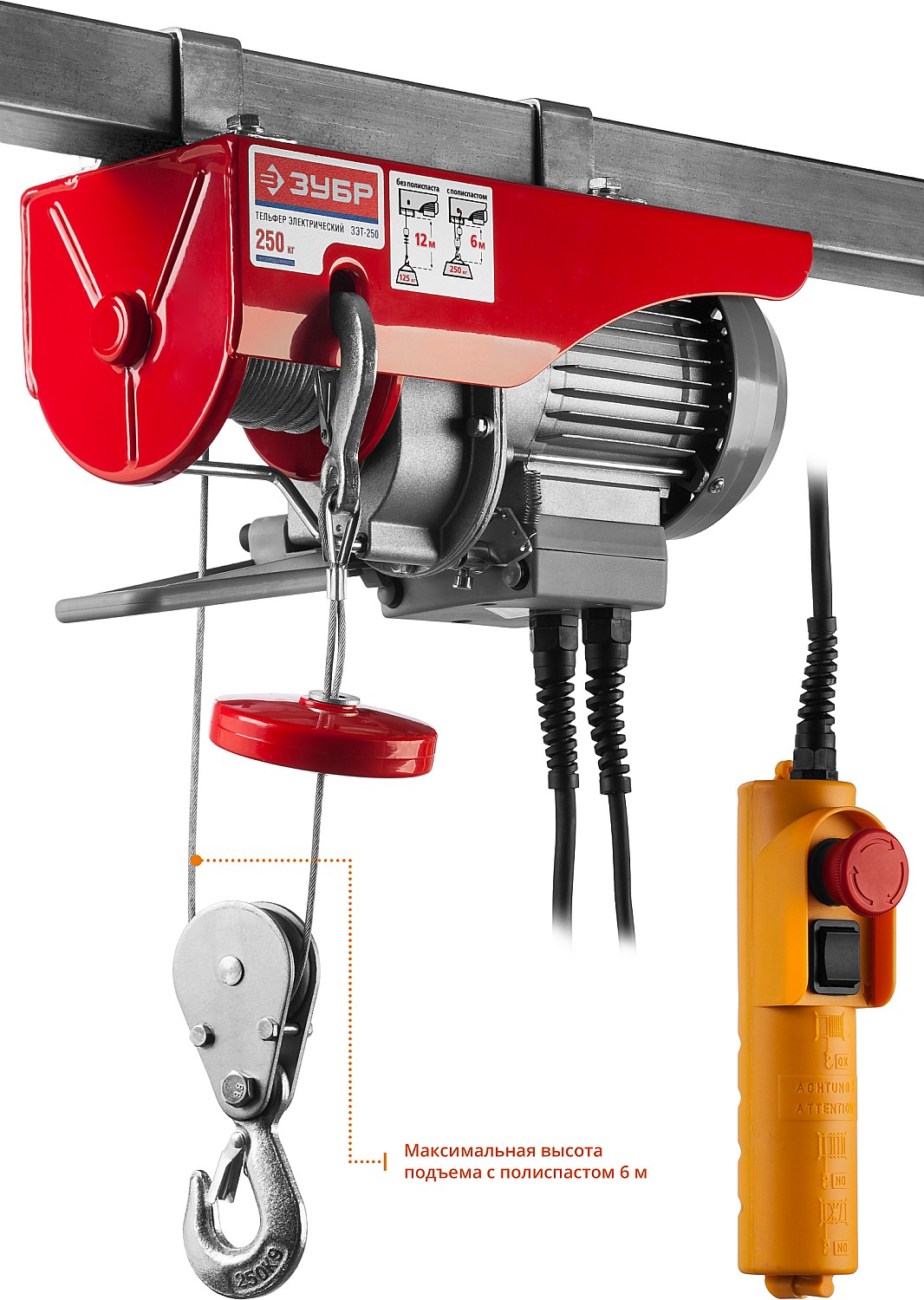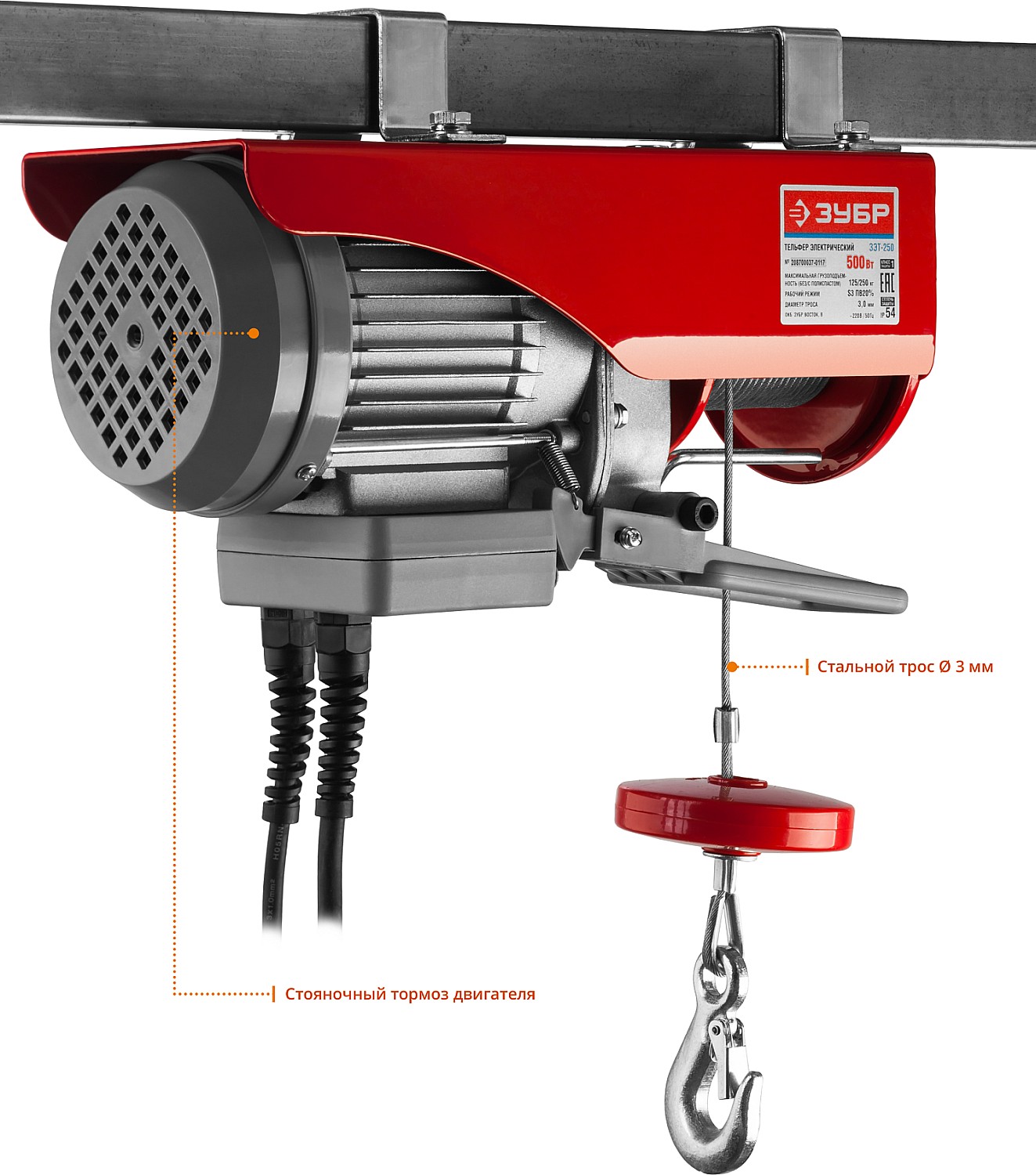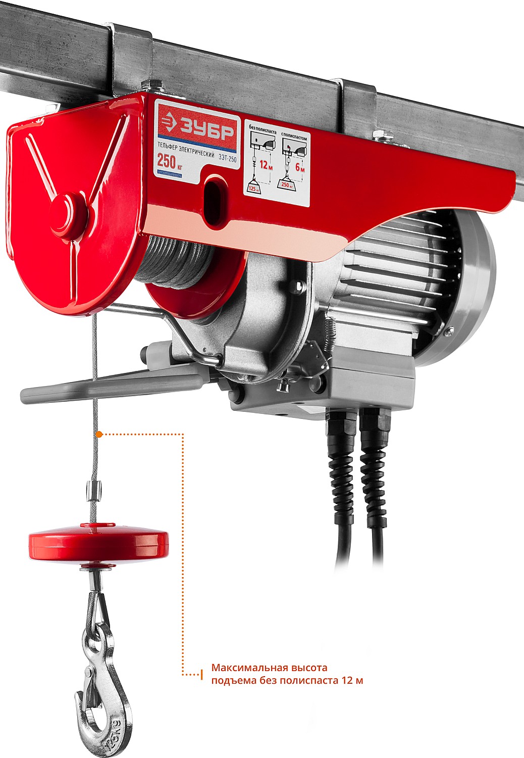 Тельфер, ЗУБР ЗЭТ-250, 250/125 кг, 500 Вт
