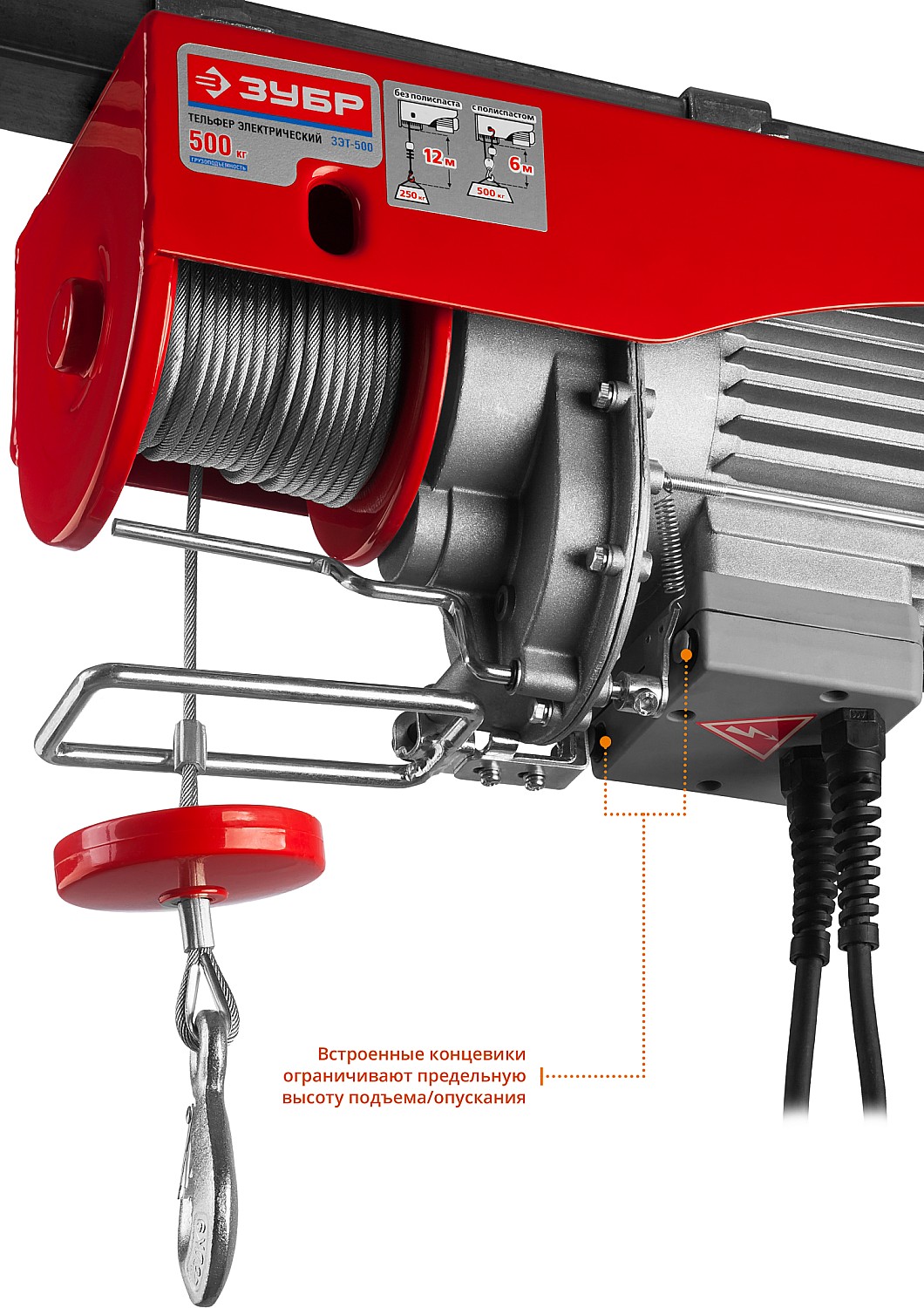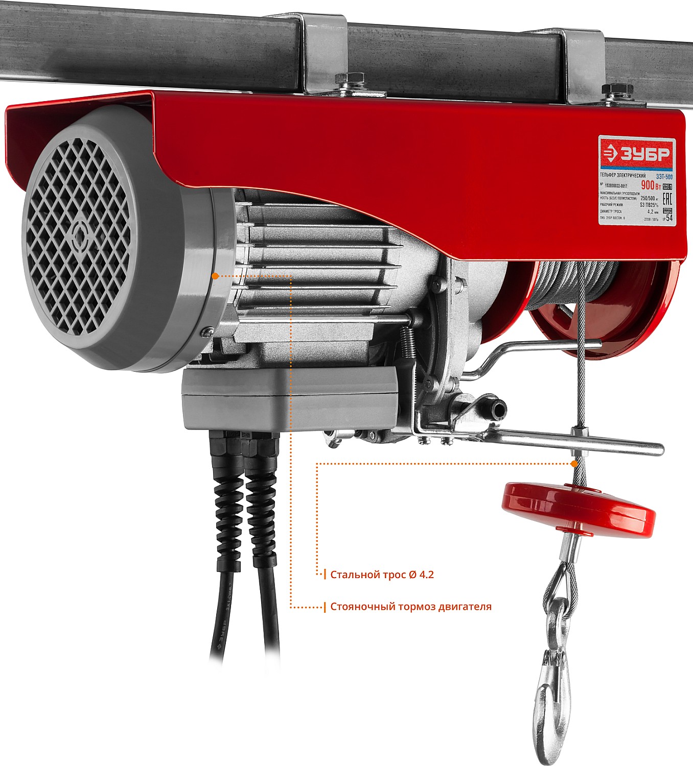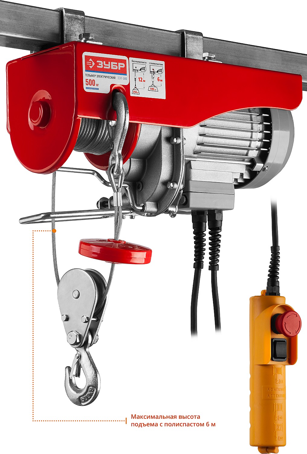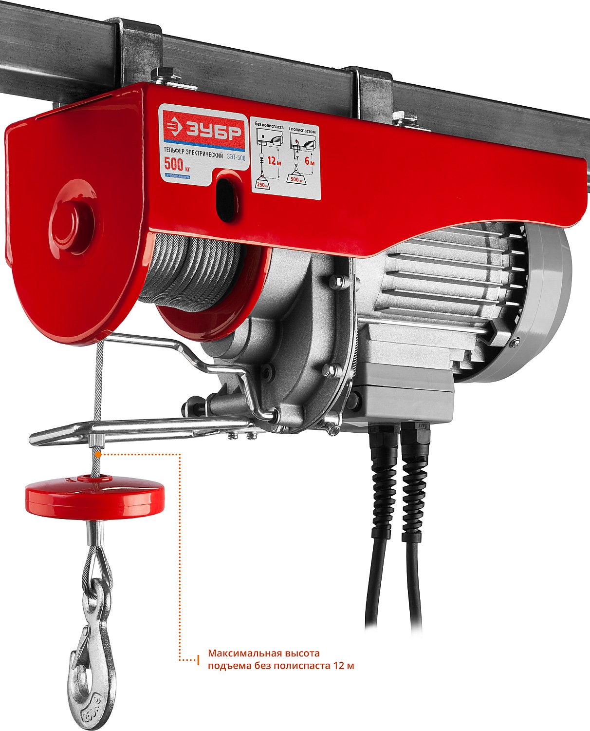 Тельфер, ЗУБР ЗЭТ-500, 500/250 кг, 900 Вт