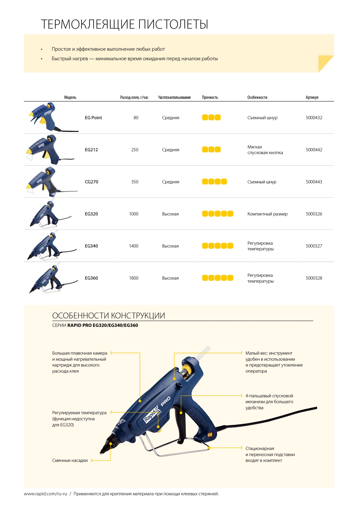 EG Point надежный, выгодный и универсальный благодаря отсутствию провода, клеевой пистолет EG Point имеет очень длинную и тонкую насадку, которая идеально подходит для точных работ. Среди других особенностей интегрированная подставка для выполнения точных работ.