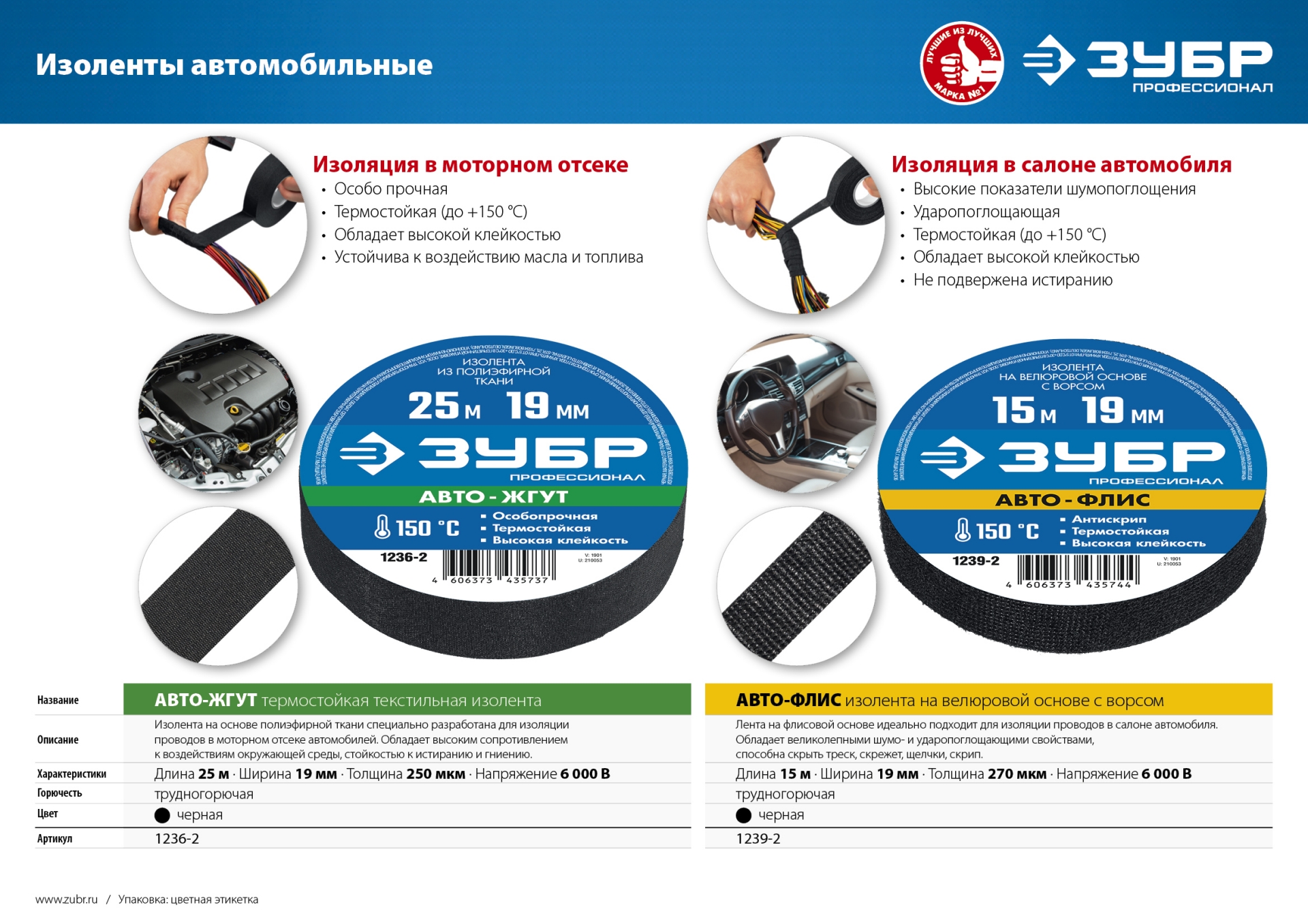 Термостойкая текстильная изолента, 19мм х 25м ЗУБР Авто-Жгут