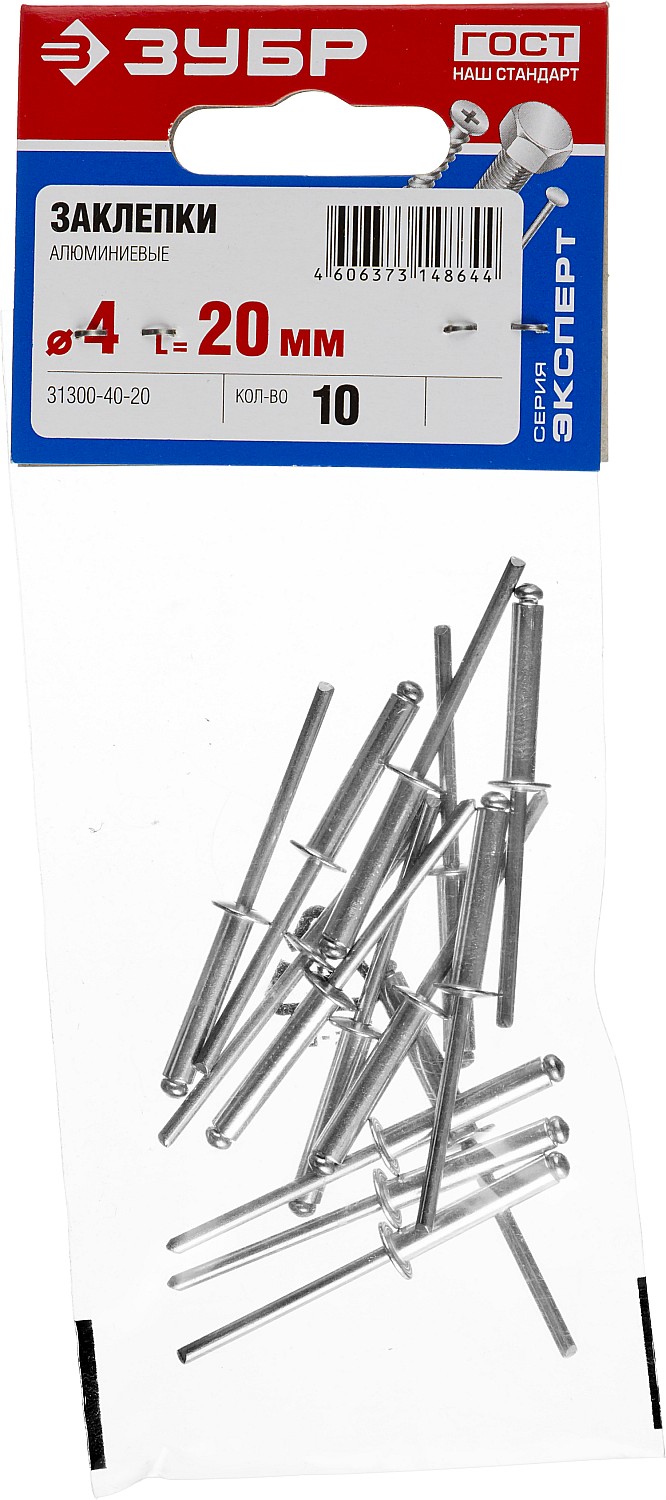 Заклепки алюминиевые, 4,0х20 мм, 10 шт, ЗУБР Профессионал
