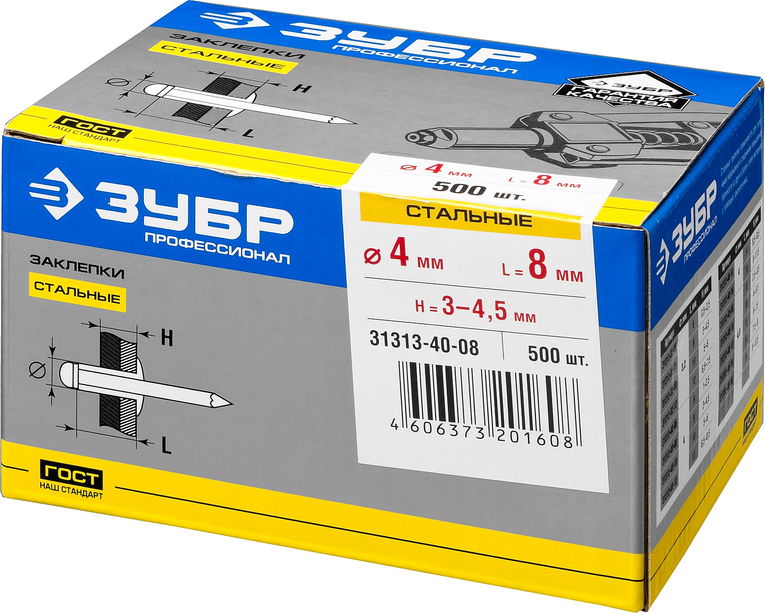 Заклепки стальные, 4,0x8 мм, 500 шт, ЗУБР Профессионал