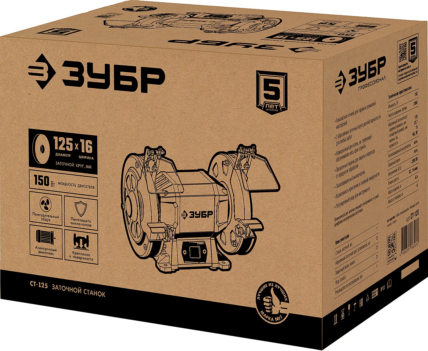 Станок заточной ЗУБР СТ-125 – незаменимый инструмент для гаража, мастерской и используемый для заточки и сухой шлифовки металлических заготовок и режущего инструмента. Простота конструкции, высокая надежность, компактный размер, два камня с разной зернистостью – все что нужно для настоящего мастера, ценяще-го качество и рассчитывающего на долгий срок службы