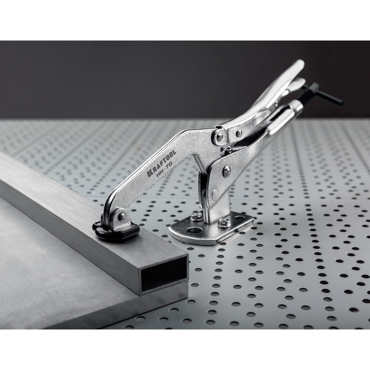 - Широкая площадка с пятью отверстиями для максимально надежной фиксации струбцины на рабочем столе.