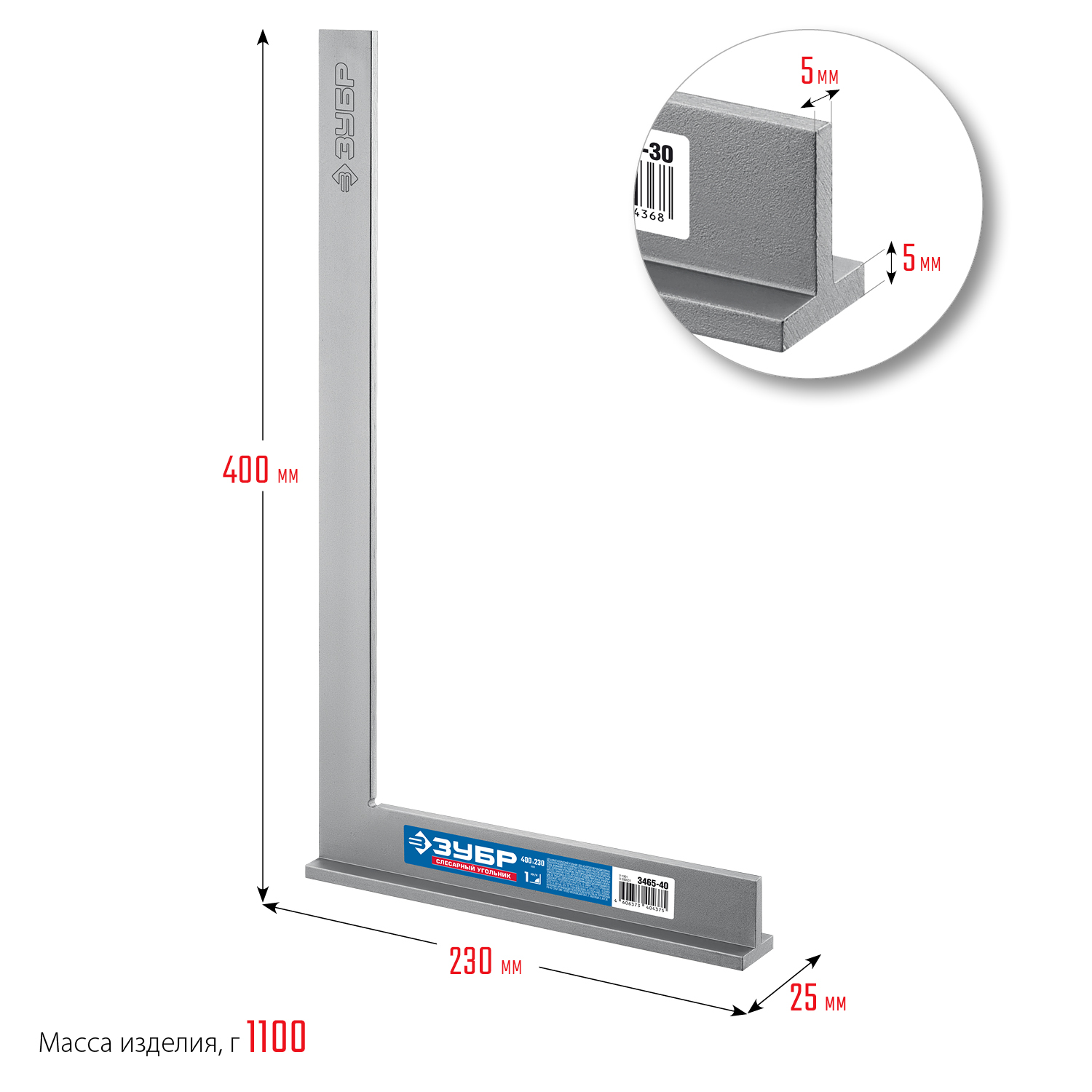 ЗУБР 400 х 230 мм, слесарный угольник, Профессионал