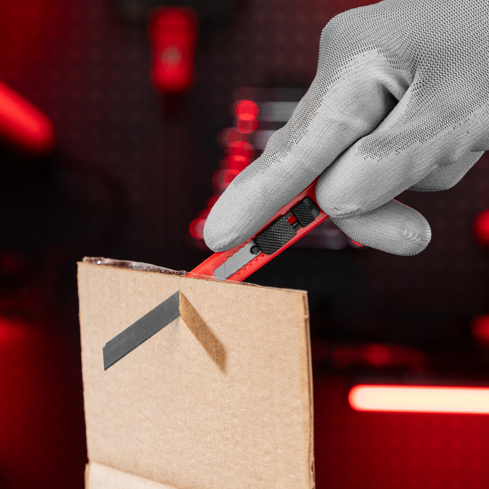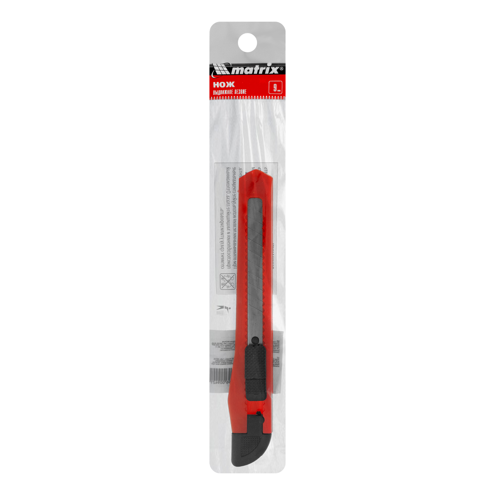 Нож Matrix 78911 с выдвижным лезвием шириной 9 мм способен резать картон, обои, скотч, бумагу и другие материалы, не требующие больших усилий. Будет полезен во время ремонта, при вскрытии упаковок, а также пригодится для решения бытовых задач. Благодаря выдвижному лезвию можно установить оптимальную длину режущей части в зависимости от толщины материала.