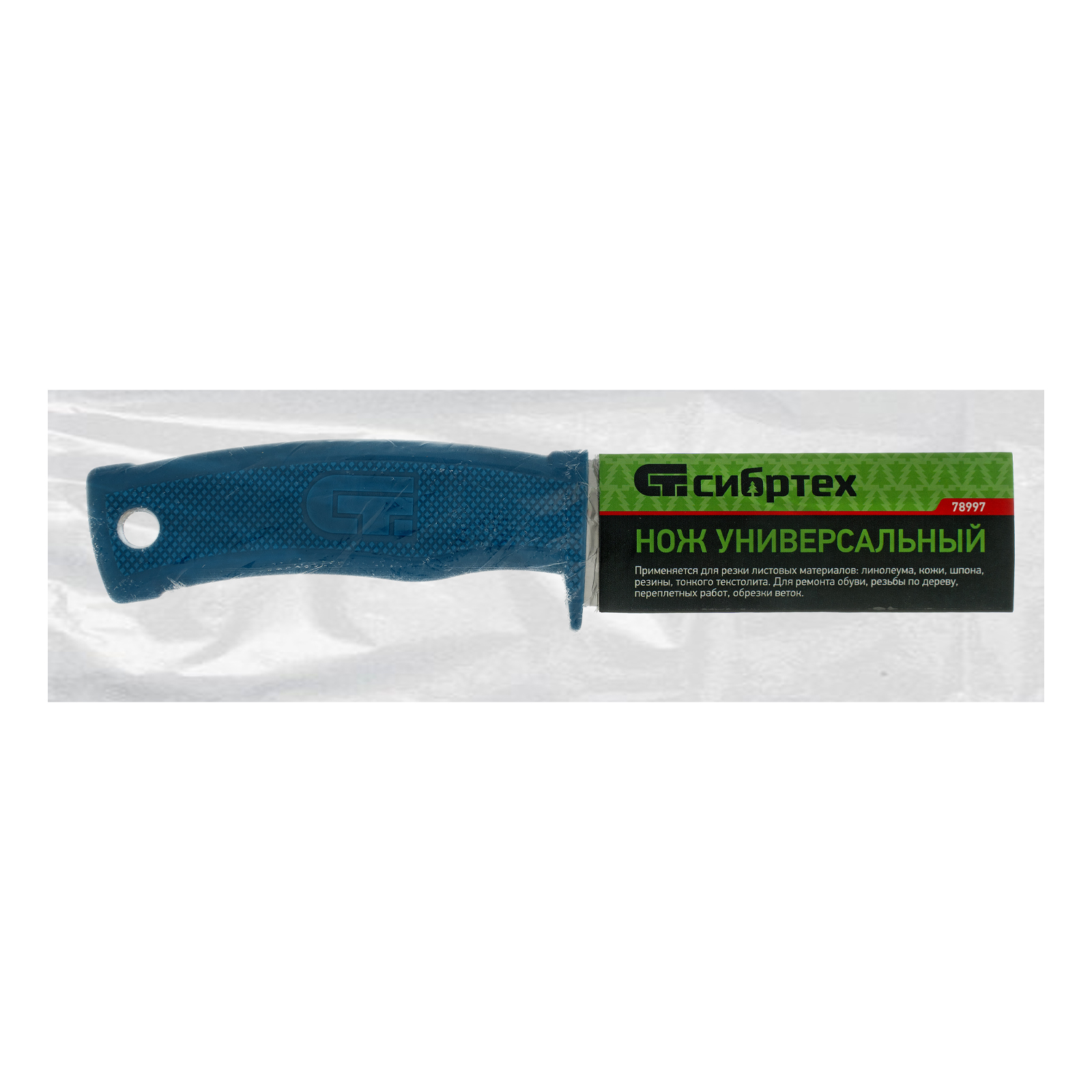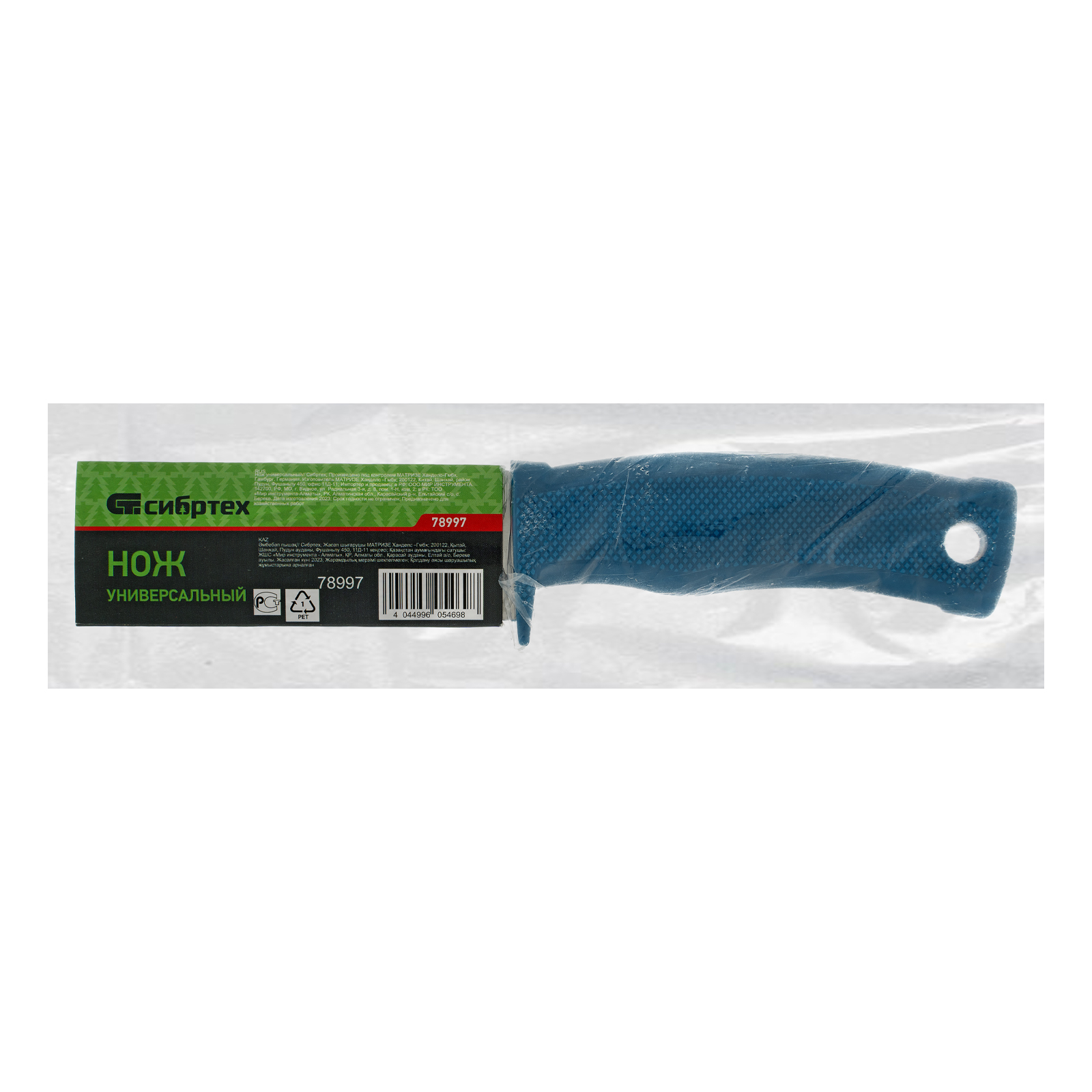 Универсальный нож Сибртех 78997 оснащен трапециевидным лезвием, благодаря чему легко режет плотные материалы: линолеум, шпон, кожу, резину и др. Он универсален по своему применению, поэтому будет полезен мастерам при проведении ремонта обуви, резьбы по дереву, переплетных, садовых и иных работ.