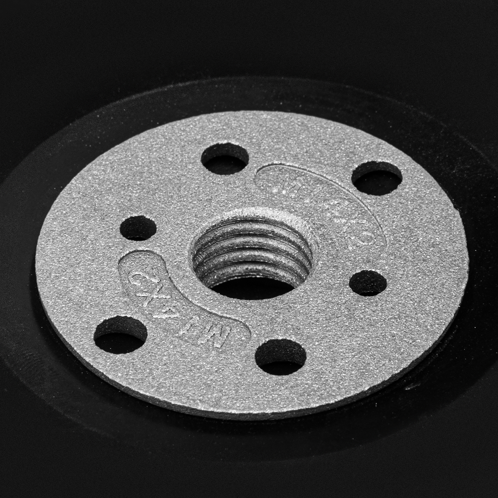 - Надежная фиксация оснастки — благодаря гайке-втулке фибровый круг не смещается во время работы.