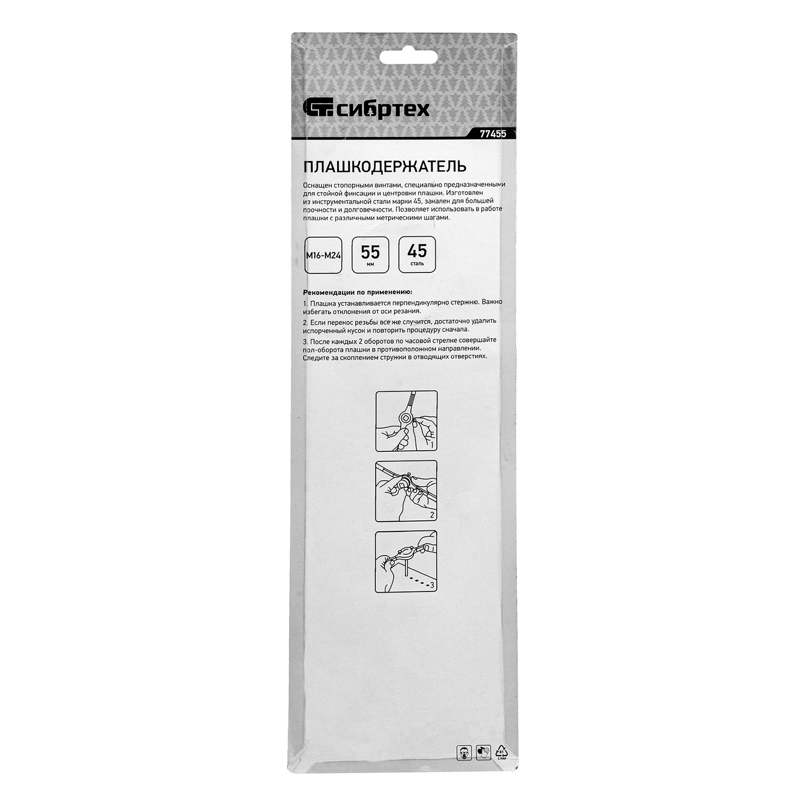 Плашкодержатель Сибртех 77455 предназначен для захвата плашек диаметром M16-24 мм. Пригодится для ручного нарезания резьбы при проведении слесарных и монтажных работ. Плашкодержатель облегчает работу и позволяет получить ровную резьбу.